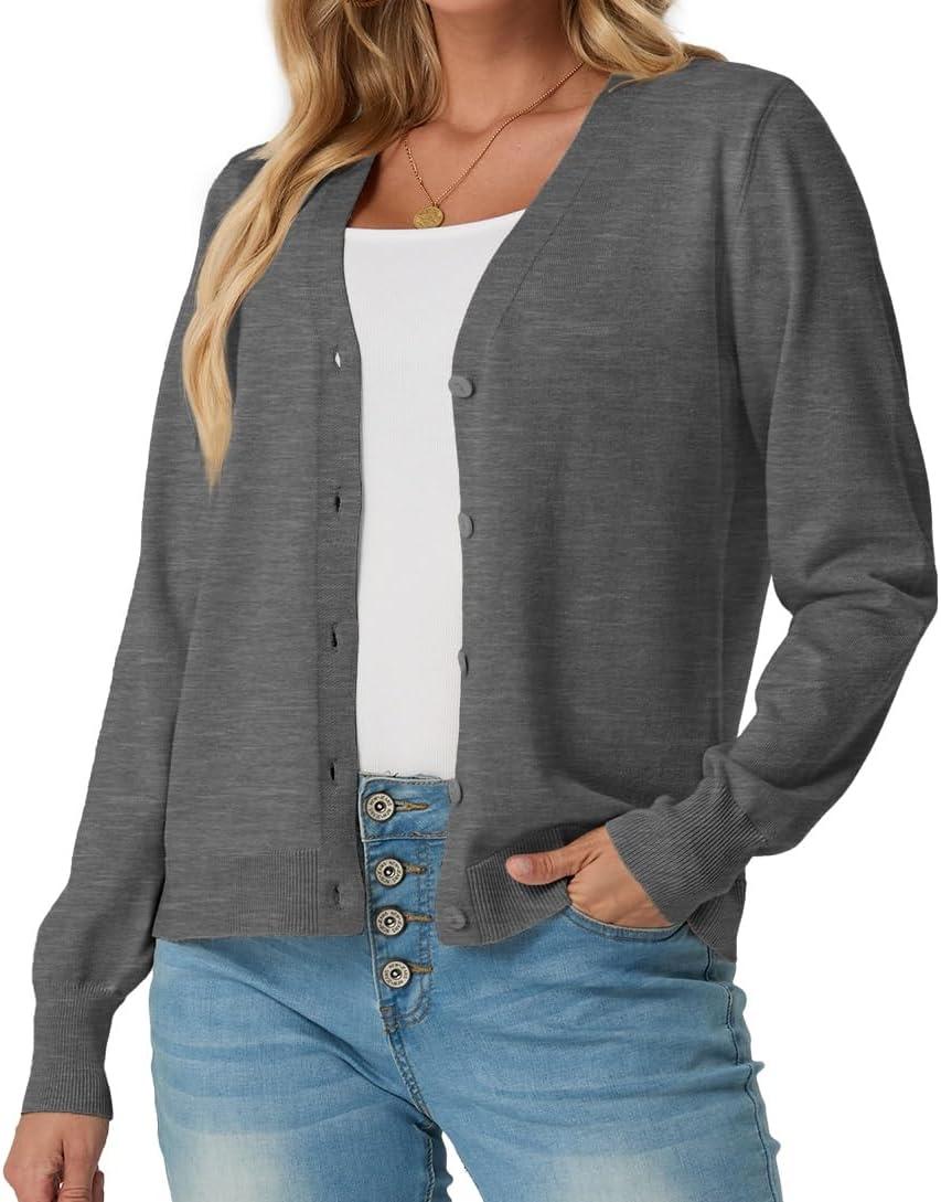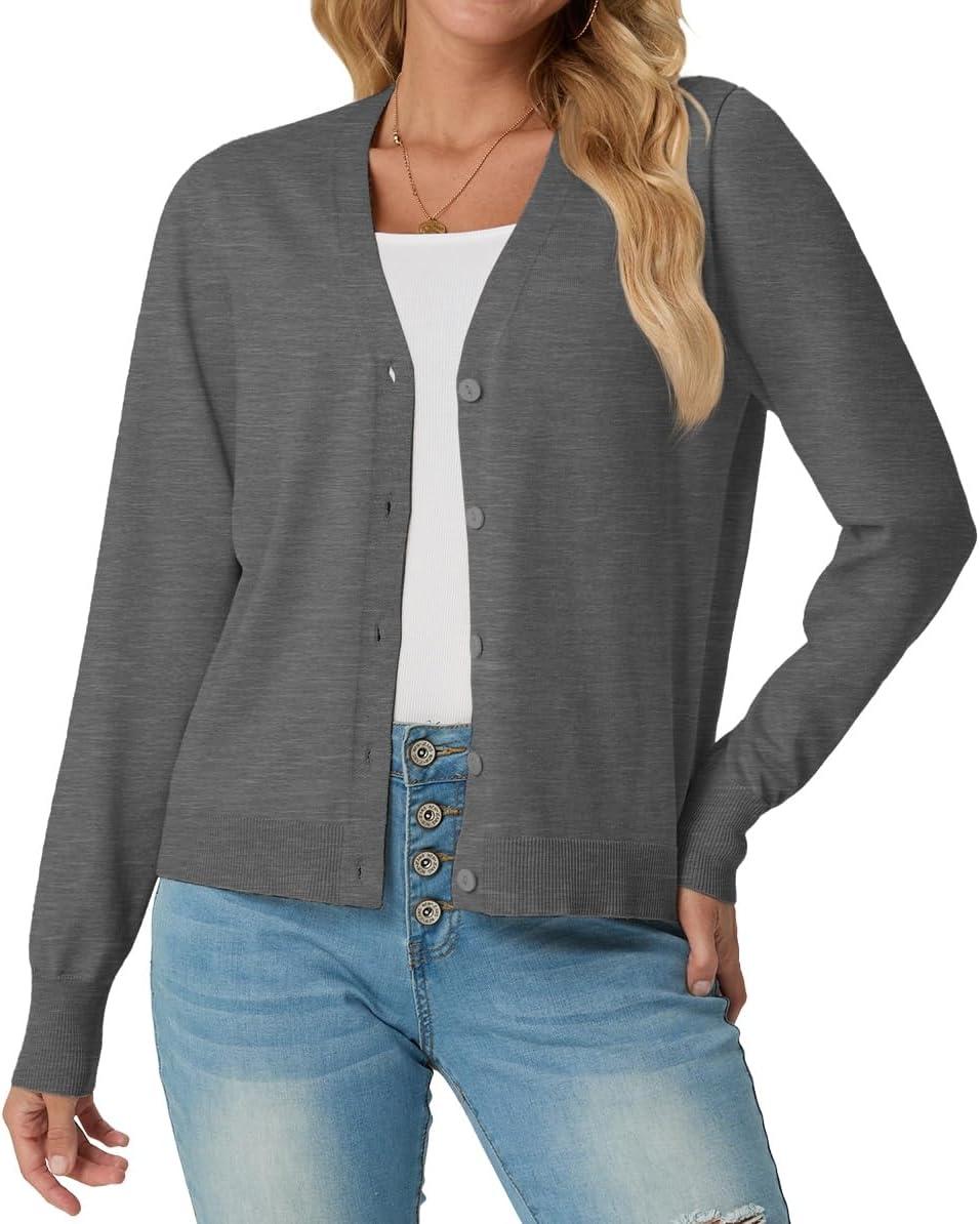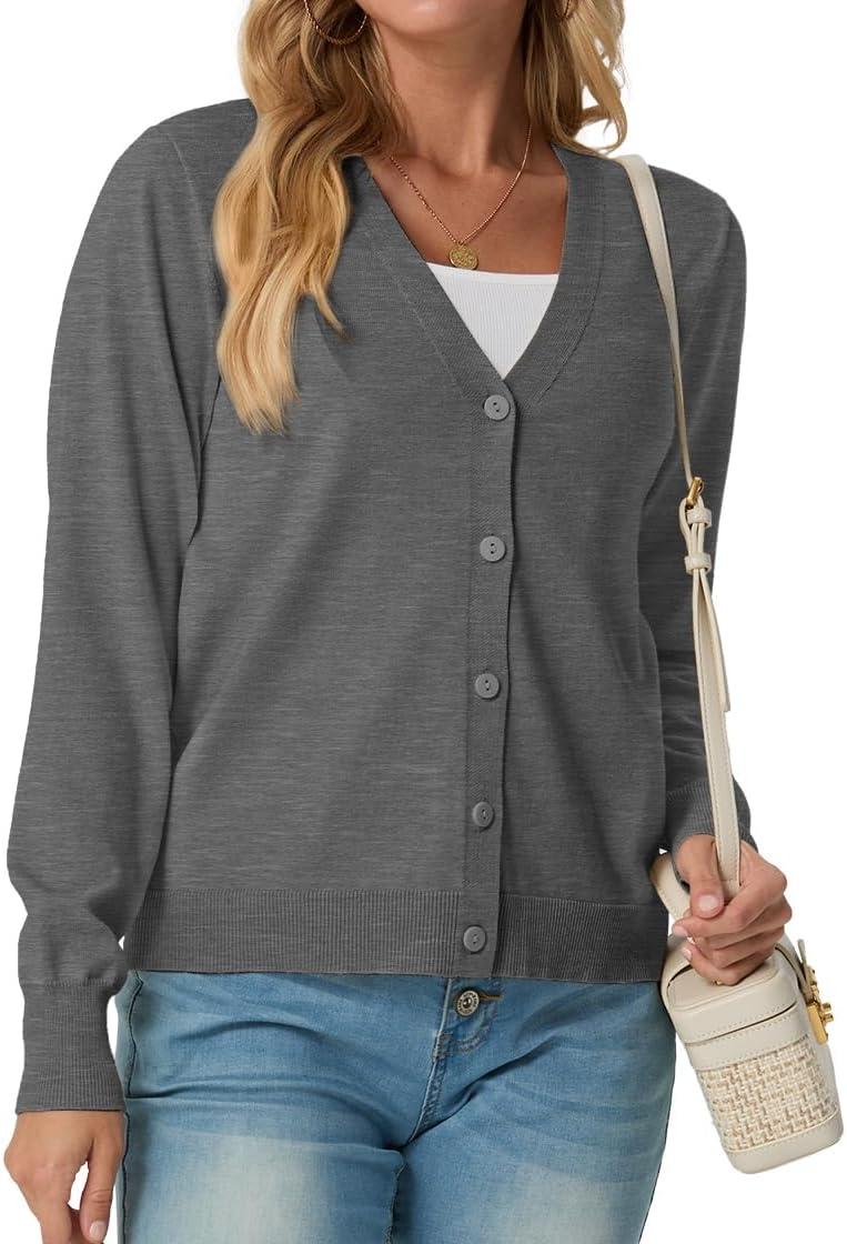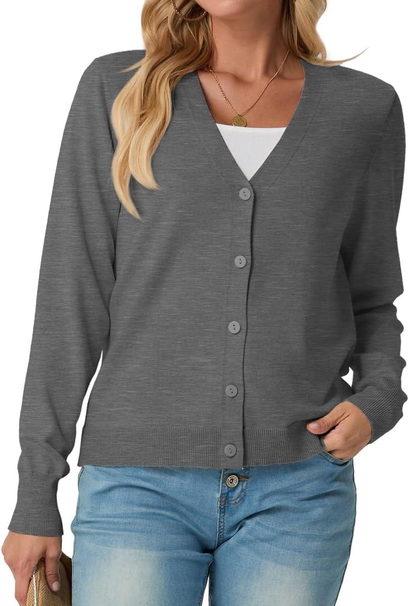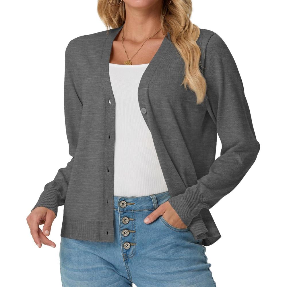 GRECERELLE 2025 Womens Lightweight Open Front Long Sleeve Casual Button Down V-Neck Cardigan Sweater (S-2XL)(Charcoal)