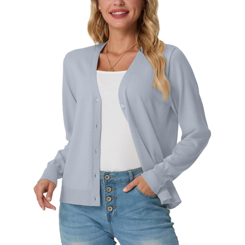 imageGRECERELLE 2025 Womens Lightweight Open Front Long Sleeve Casual Button Down VNeck Cardigan Sweater S2XLGrey Blue