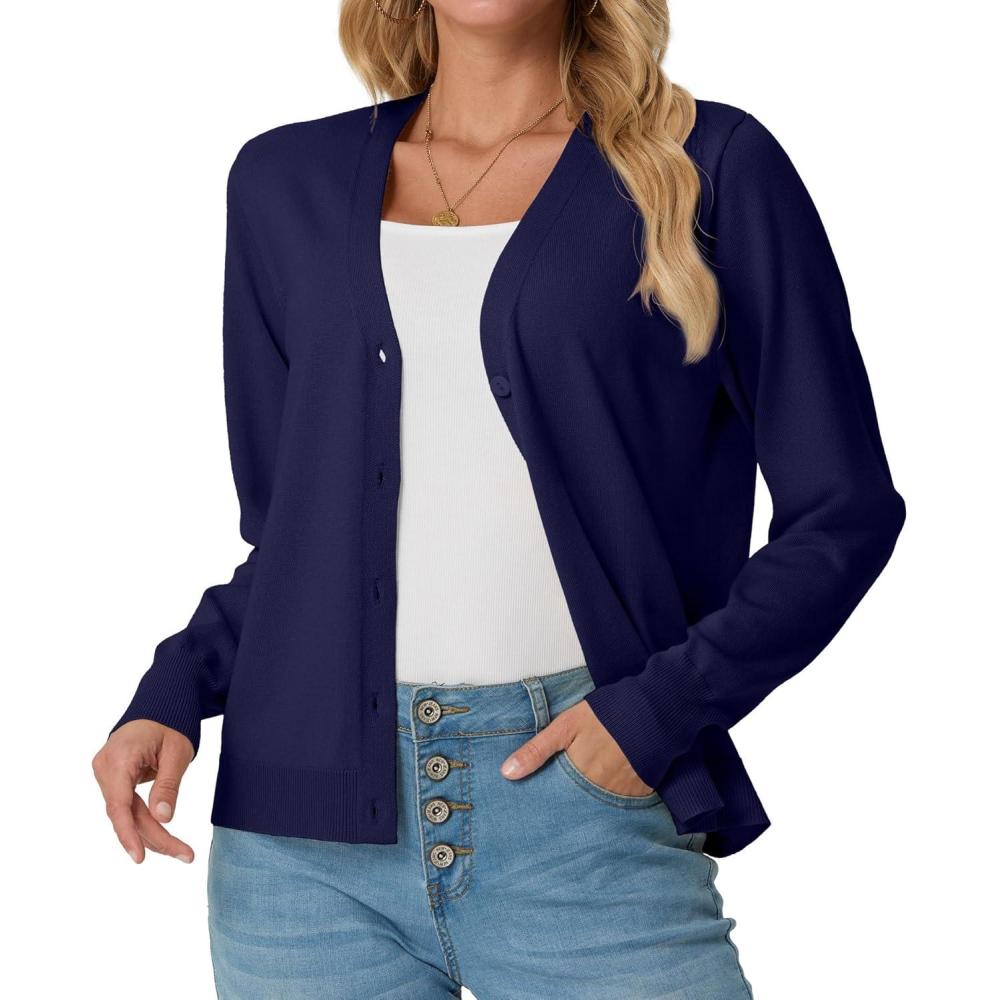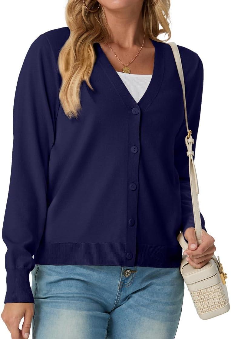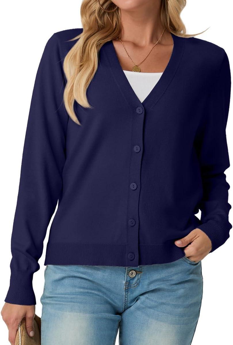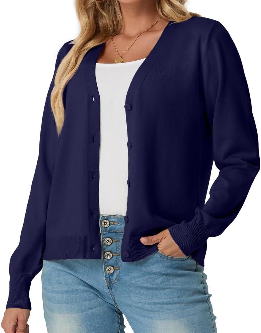 GRECERELLE 2025 Womens Lightweight Open Front Long Sleeve Casual Button Down V-Neck Cardigan Sweater (S-2XL)(Navy Blue)