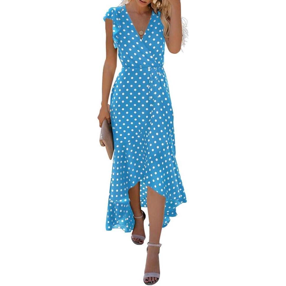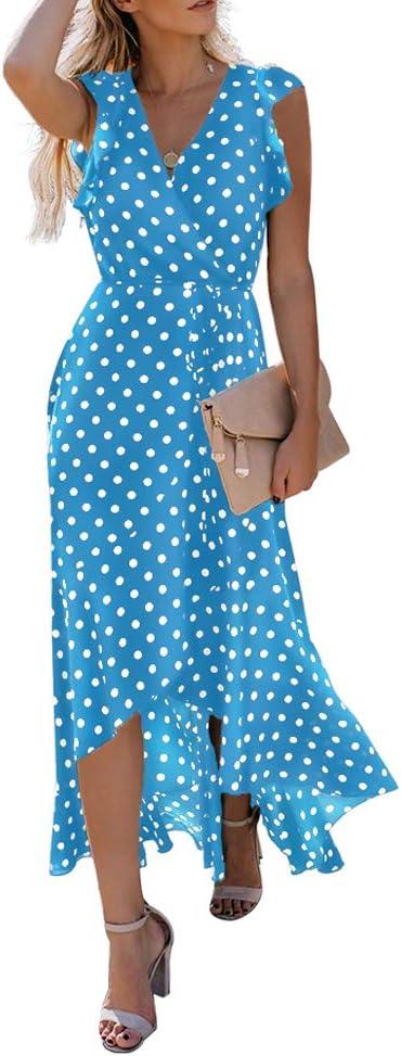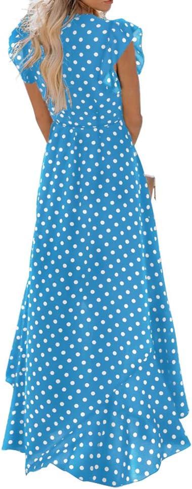 GRECERELLE 2026 Women's Spring Summer Boho Floral Print V-Neck Faux Wrap Maxi Dress for Wedding Guest, Graduation, Party(07 Polka Dots-light Blue)