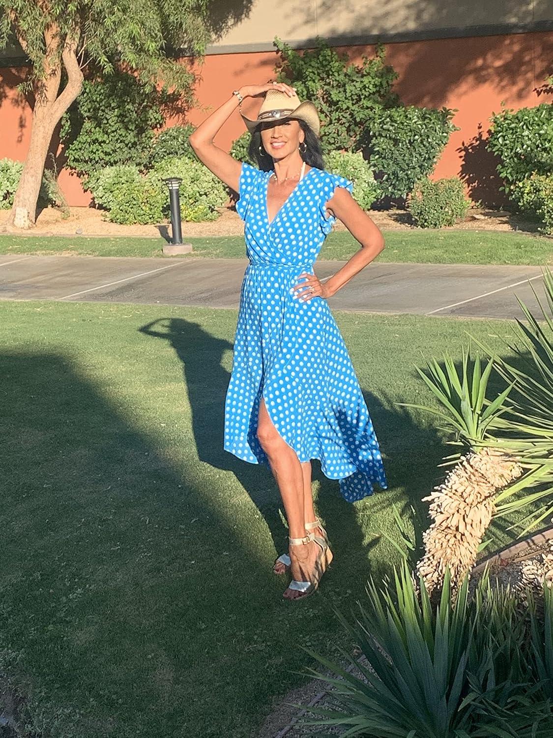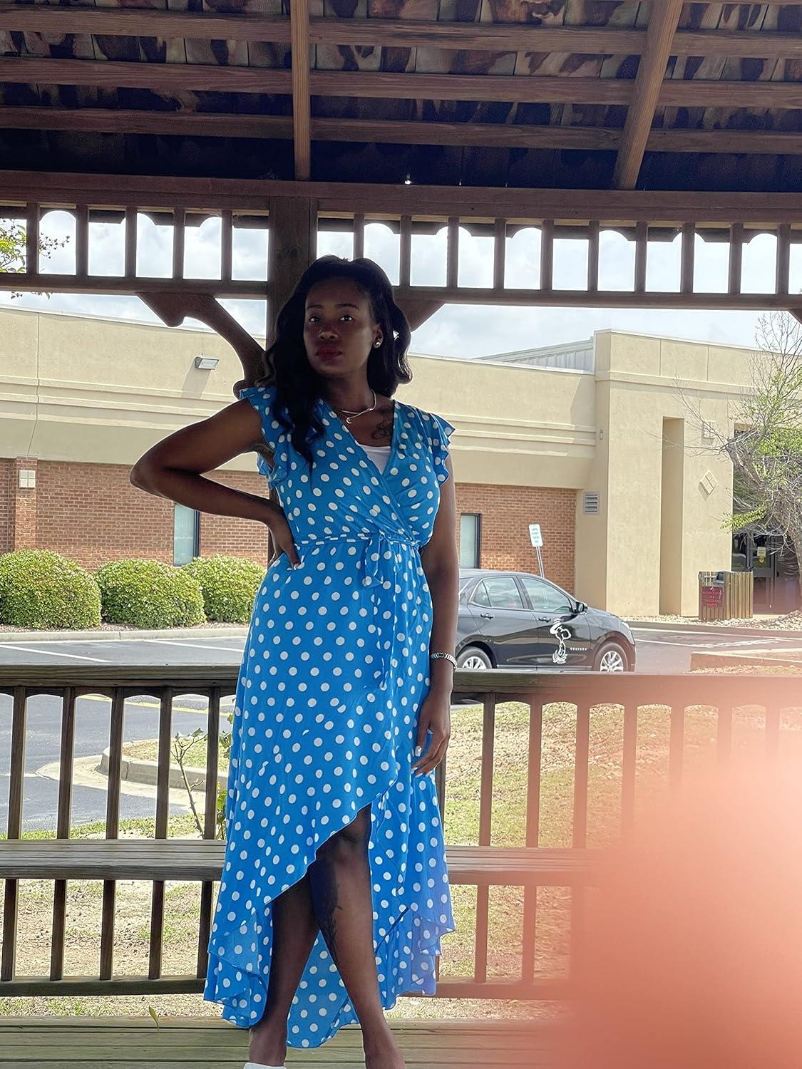 GRECERELLE 2026 Women’s Spring Summer Boho Floral Print V-Neck Faux Wrap Maxi Dress for Wedding Guest, Graduation, Party(07 Polka Dots-light Blue)
