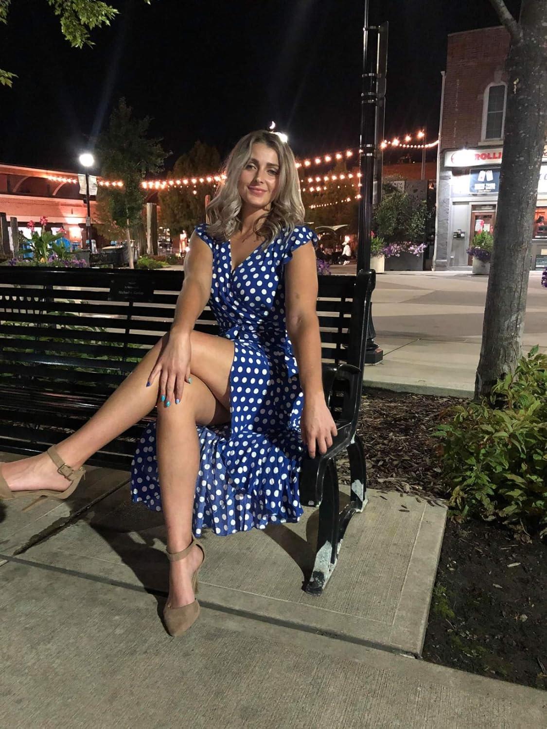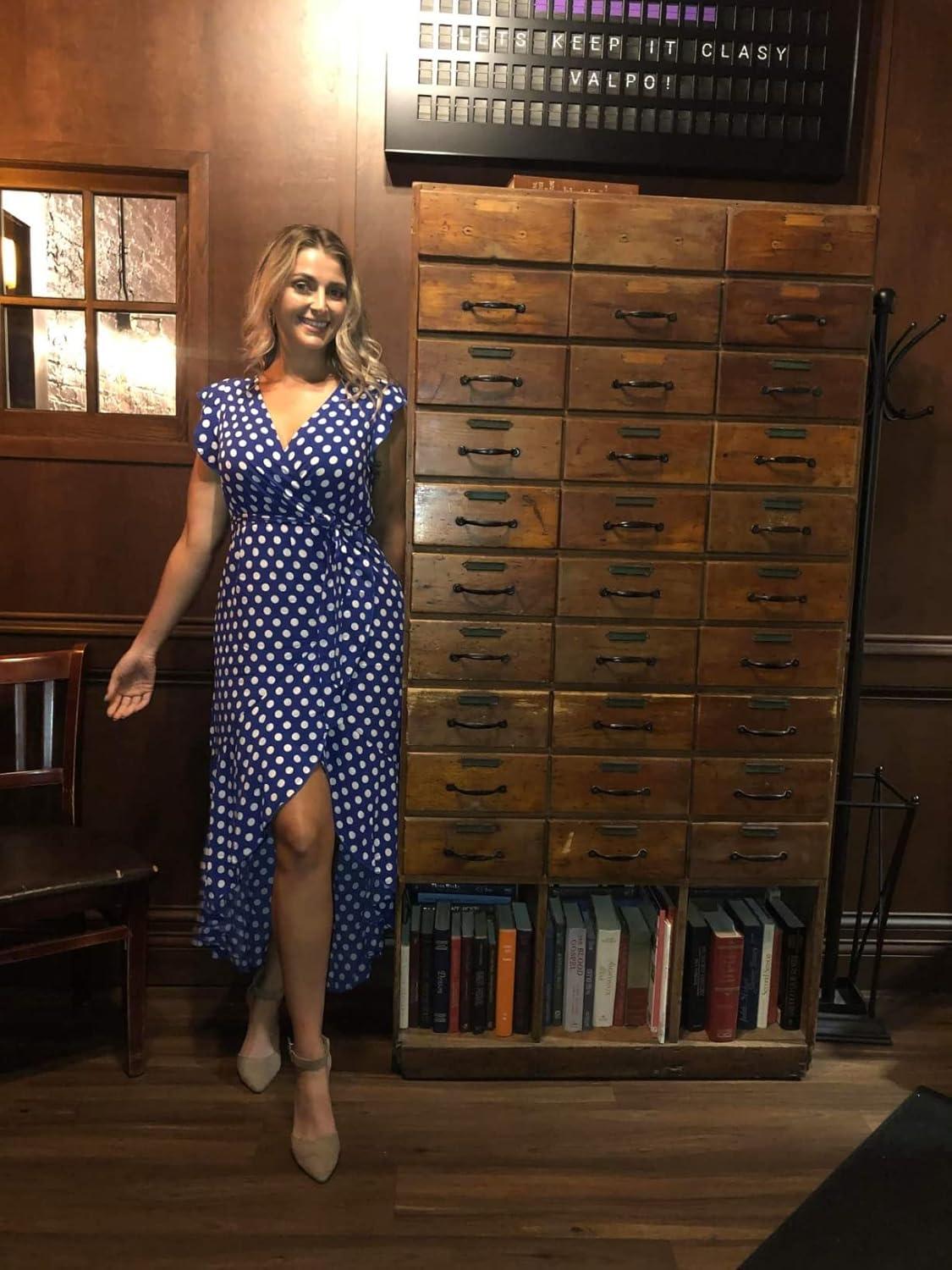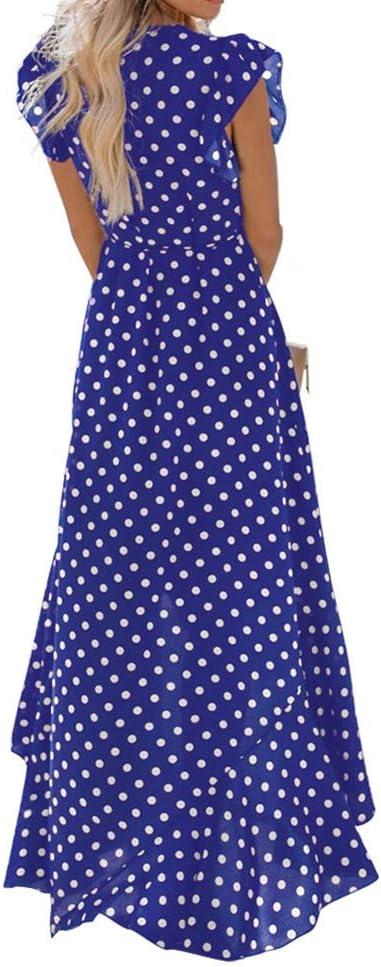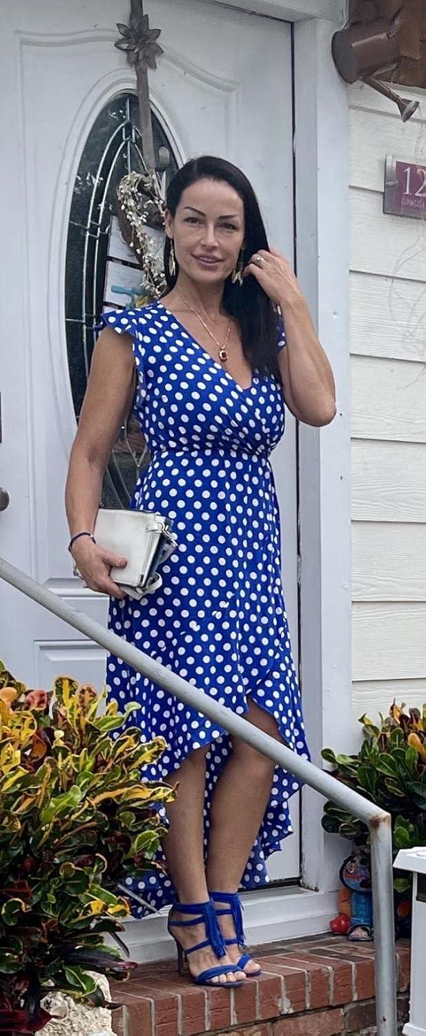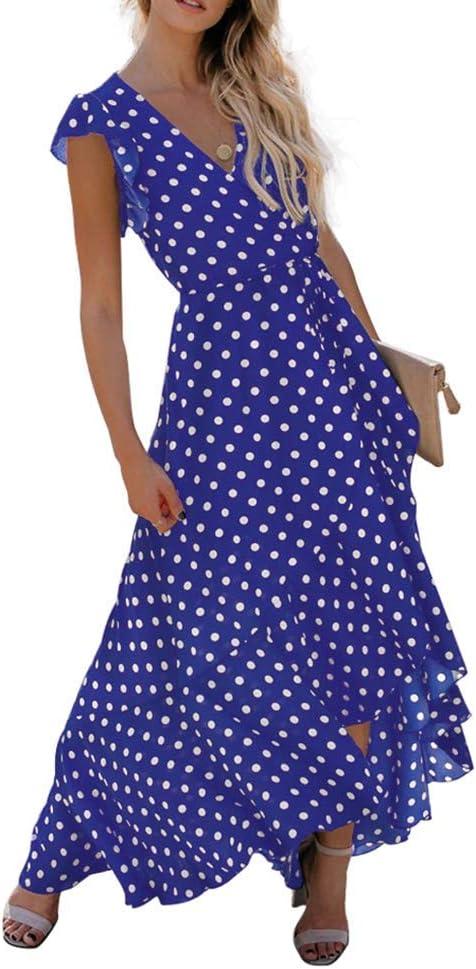 GRECERELLE 2026 Women’s Spring Summer Boho Floral Print V-Neck Faux Wrap Maxi Dress for Wedding Guest, Graduation, Party(18 Polka Dots-royal Blue)