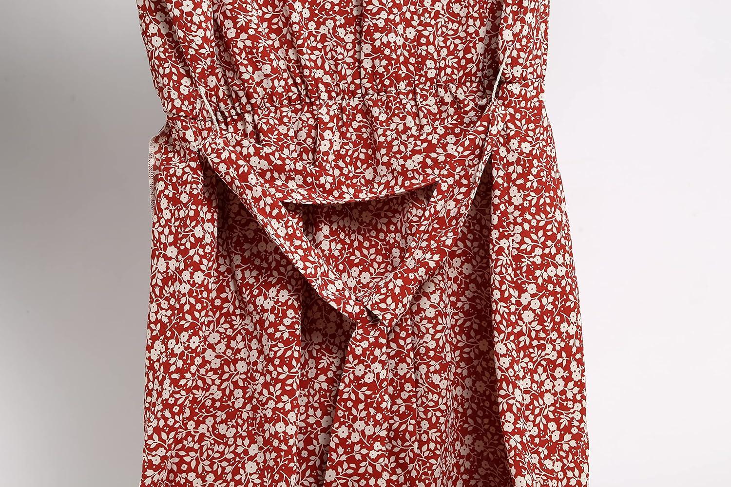 imageGRECERELLE 2026 Womens Spring Summer Boho Floral Print VNeck Faux Wrap Maxi Dress for Wedding Guest Graduation Party23 Fp Floret Red
