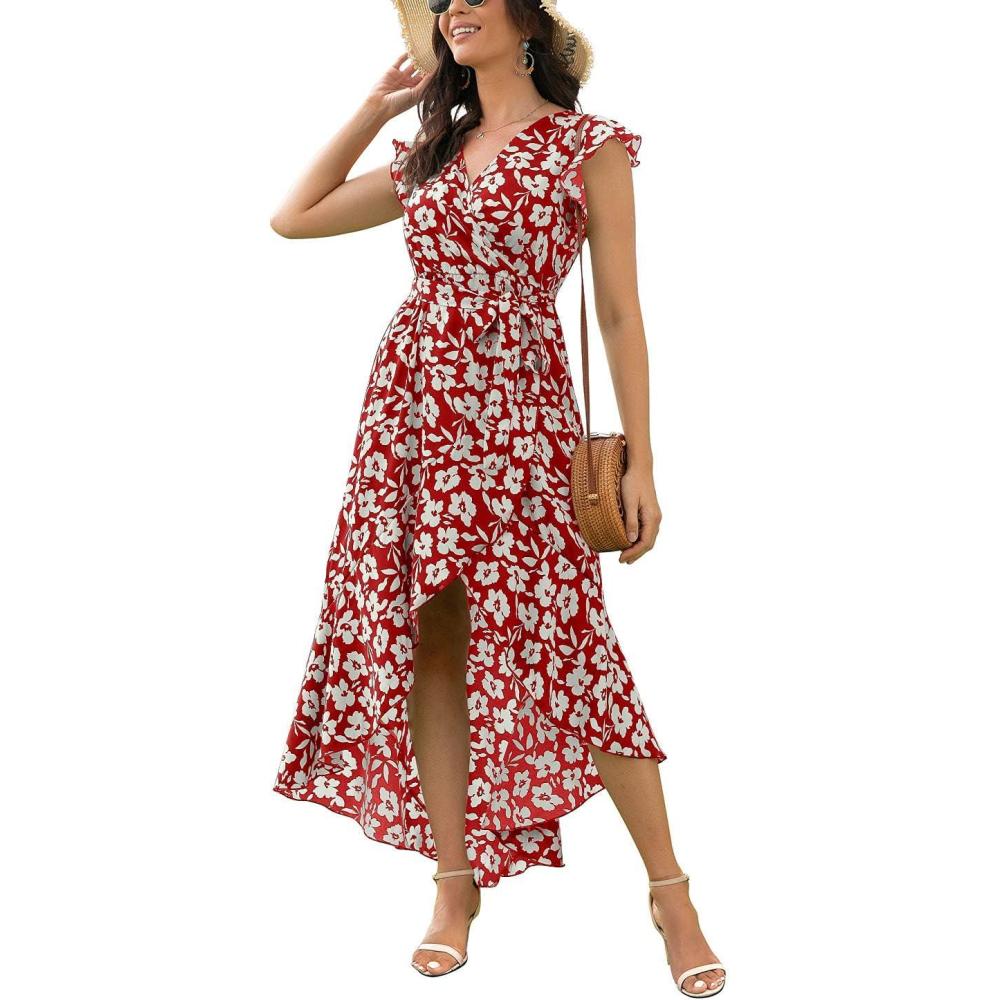 imageGRECERELLE 2026 Womens Spring Summer Boho Floral Print VNeck Faux Wrap Maxi Dress for Wedding Guest Graduation Party25 Fp Big Lily Red