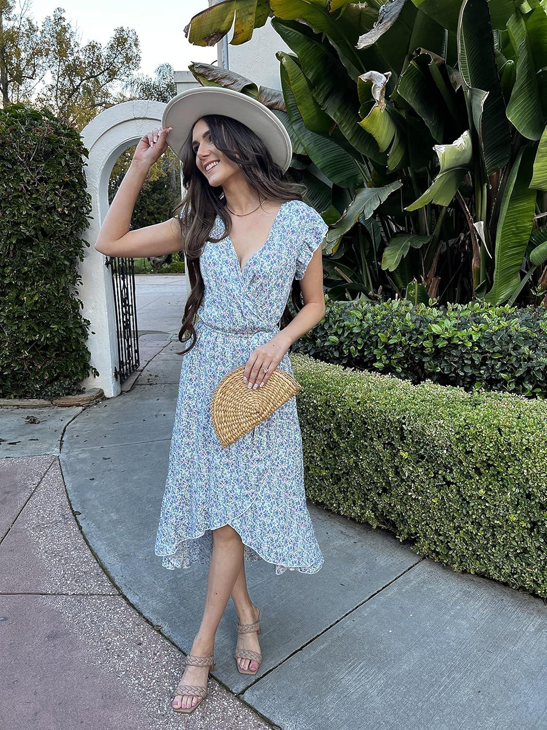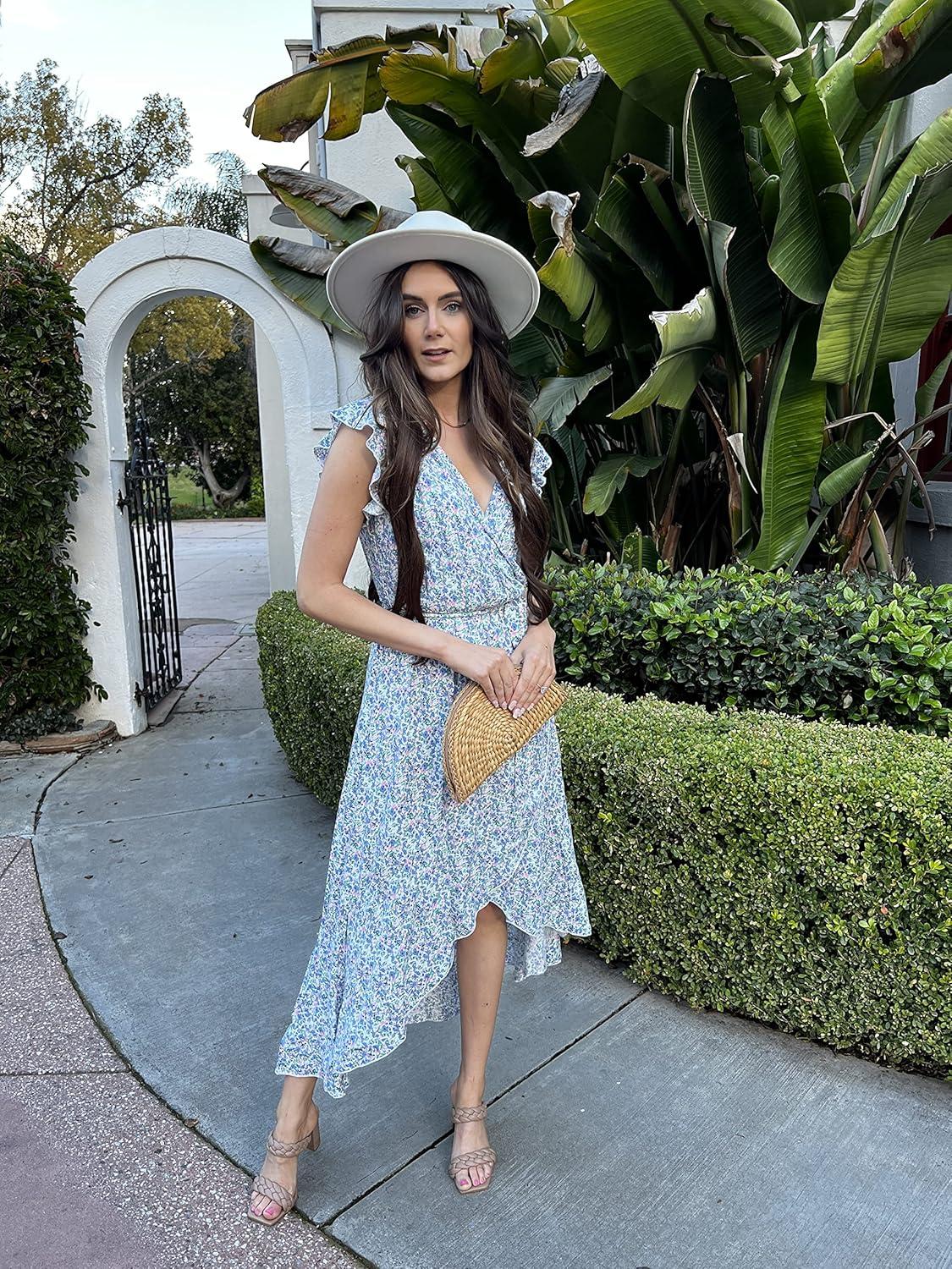 imageGRECERELLE 2026 Womens Spring Summer Boho Floral Print VNeck Faux Wrap Maxi Dress for Wedding Guest Graduation Party26 Fp Floret Blue