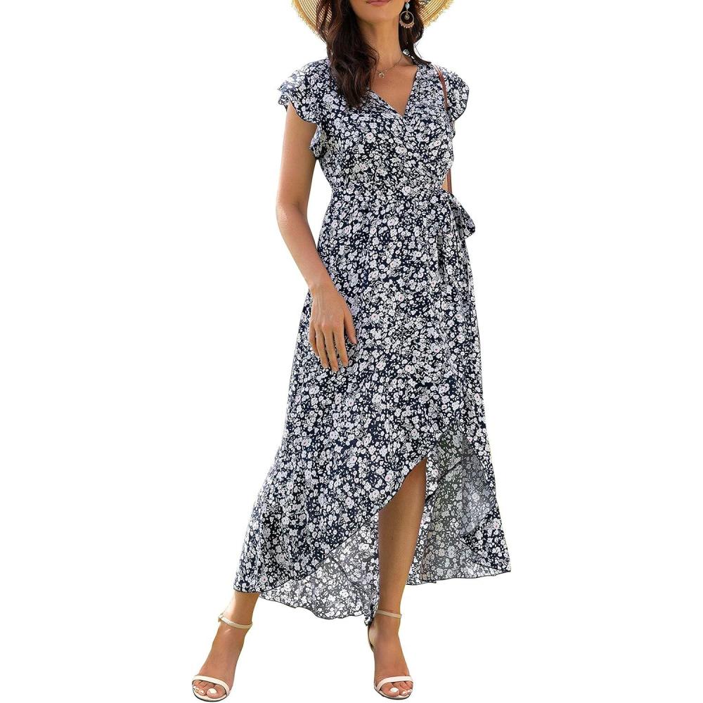 imageGRECERELLE 2026 Womens Spring Summer Boho Floral Print VNeck Faux Wrap Maxi Dress for Wedding Guest Graduation Party20 Fp Jasmine Navy