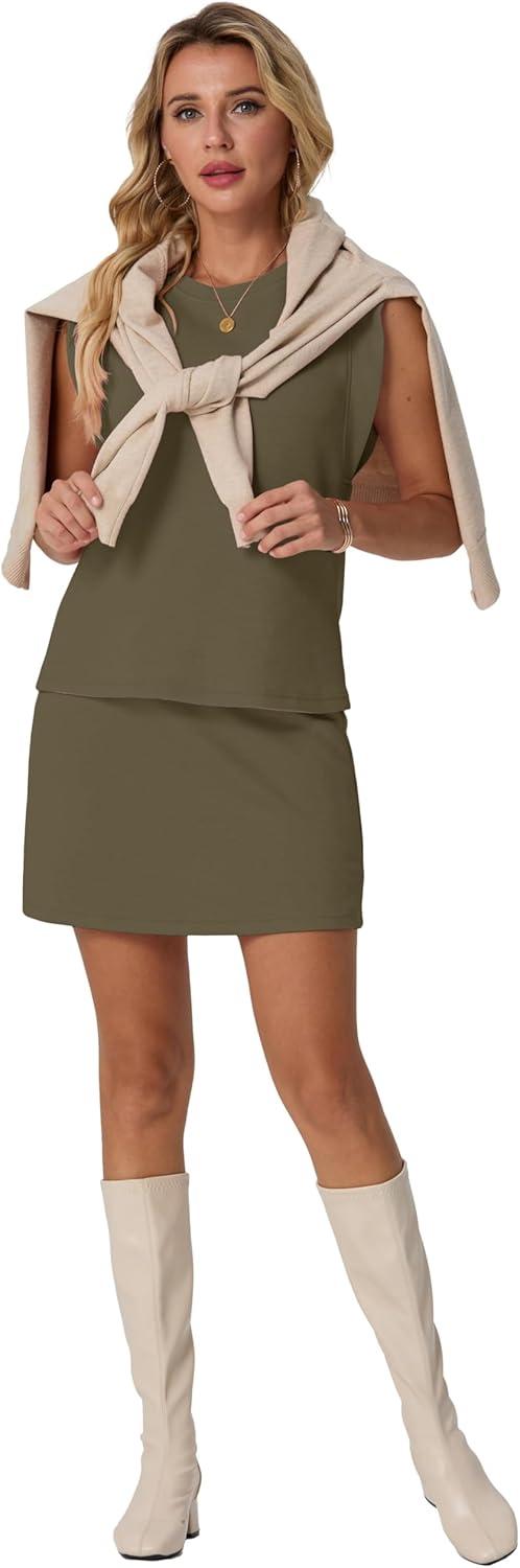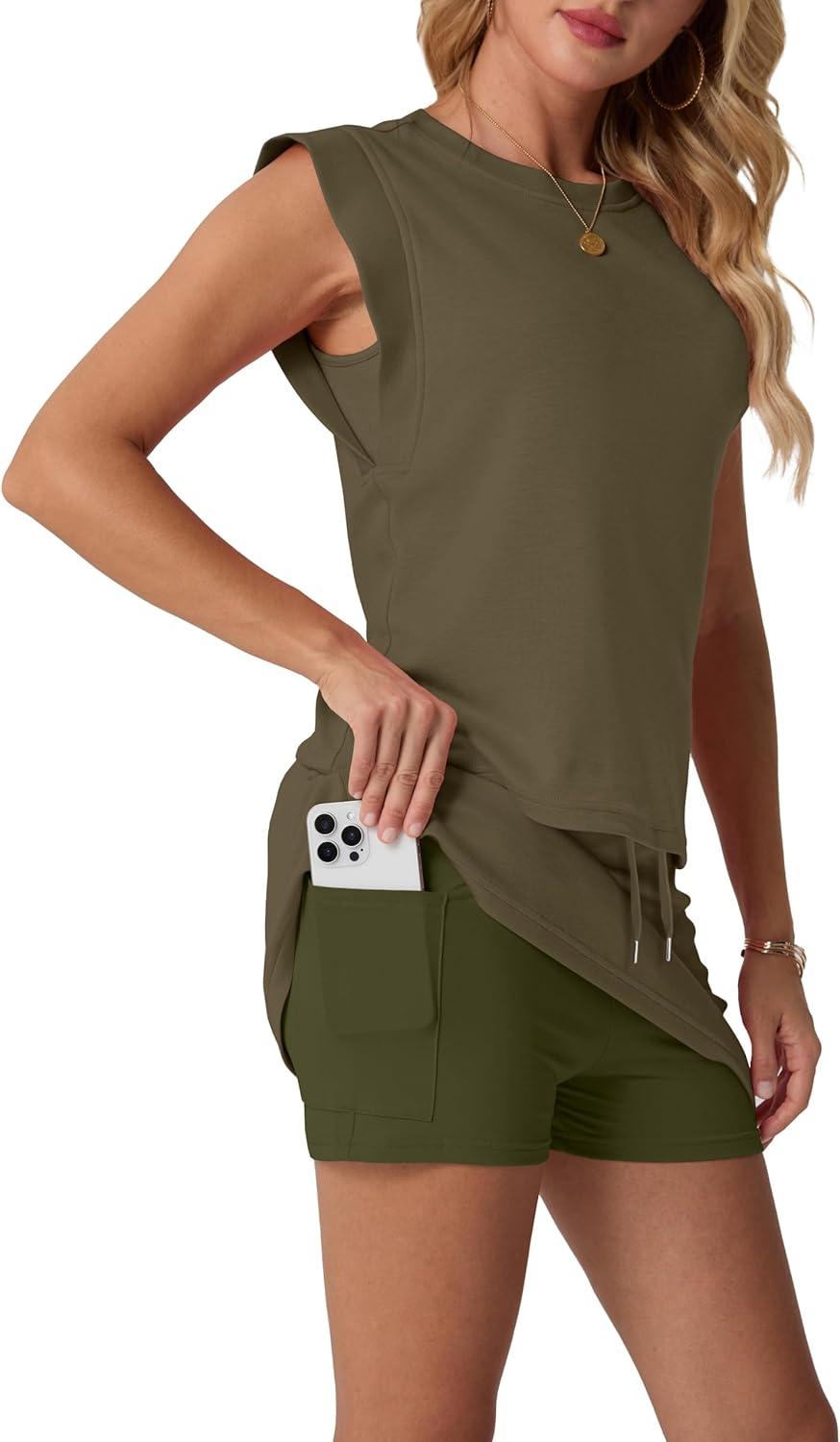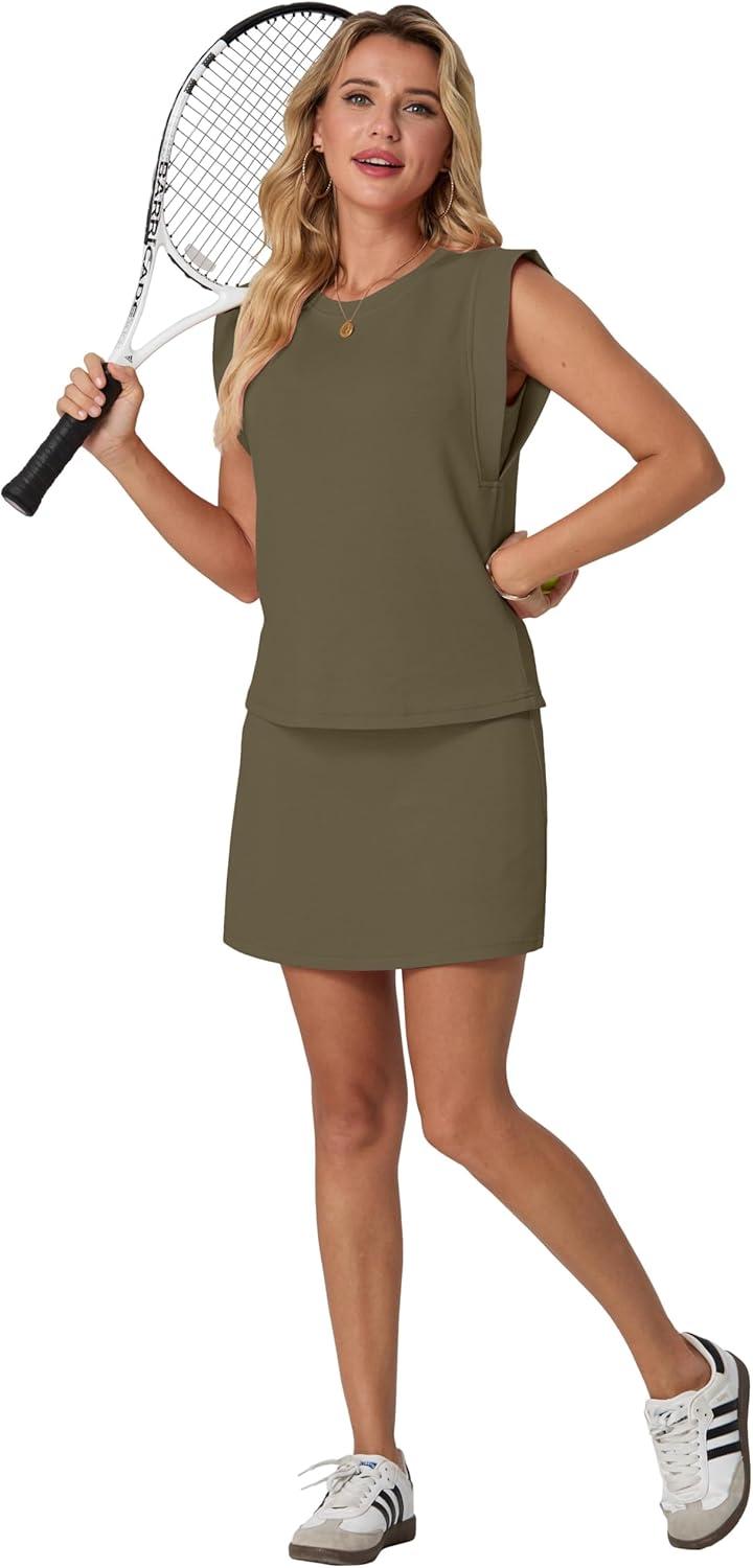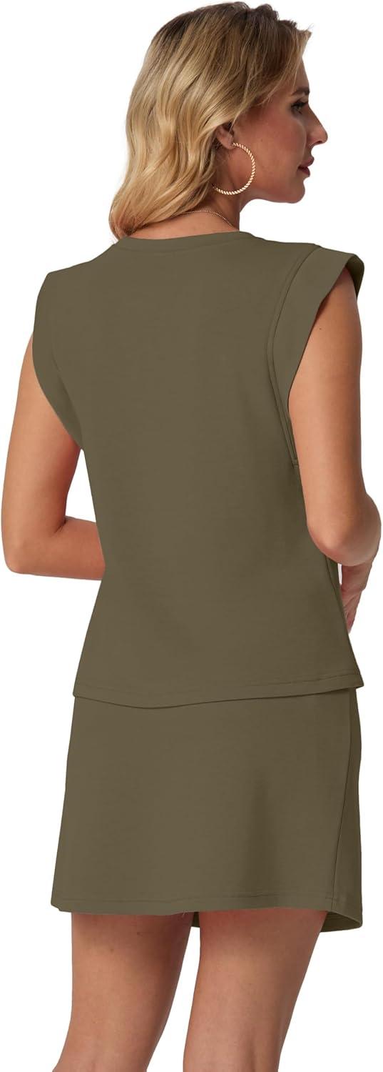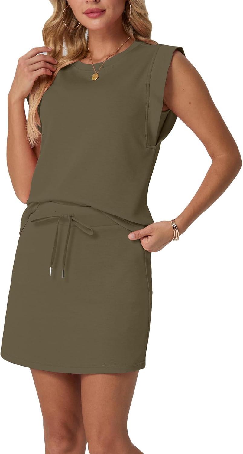 GRECERELLE 2026 Women's Summer 2 Piece Skort Set Cap Sleeve Round Neck Top & Tennis Skirt with Pockets for Athletic & Casual(Army Green)