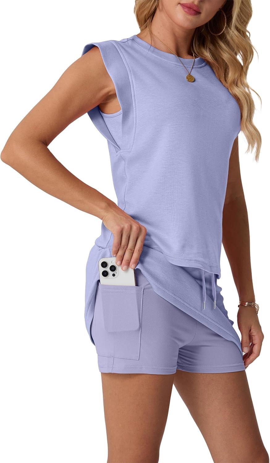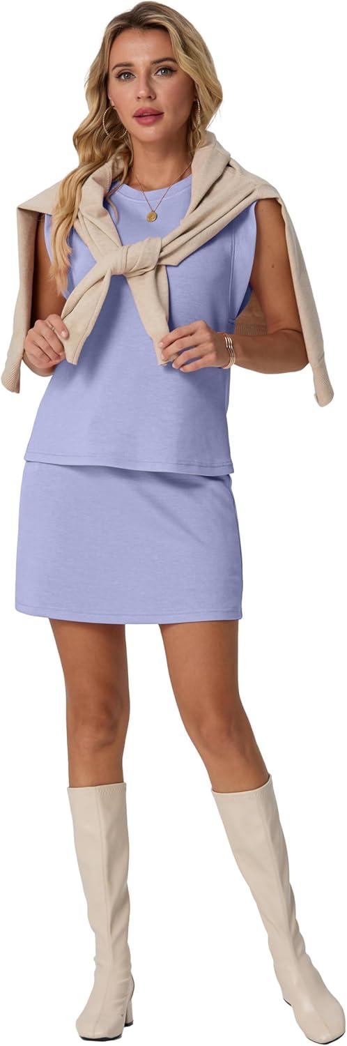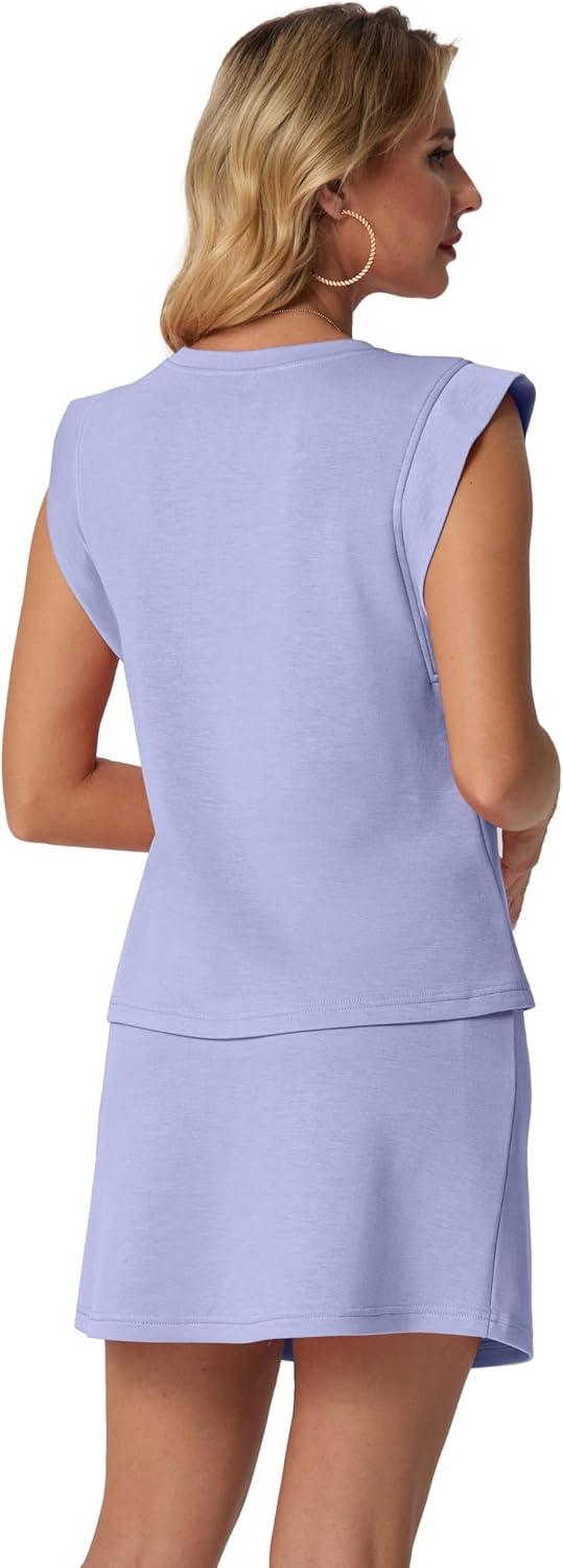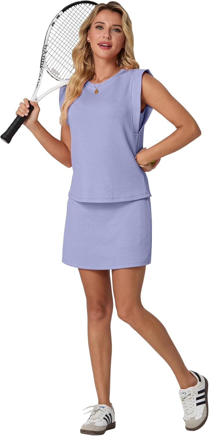 GRECERELLE 2026 Women's Summer 2 Piece Skort Set Cap Sleeve Round Neck Top & Tennis Skirt with Pockets for Athletic & Casual(Aura Indigo)