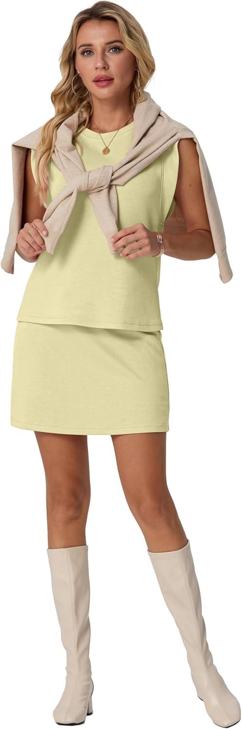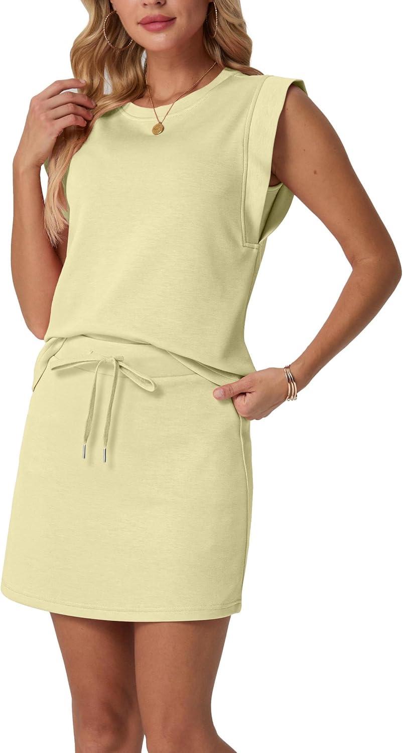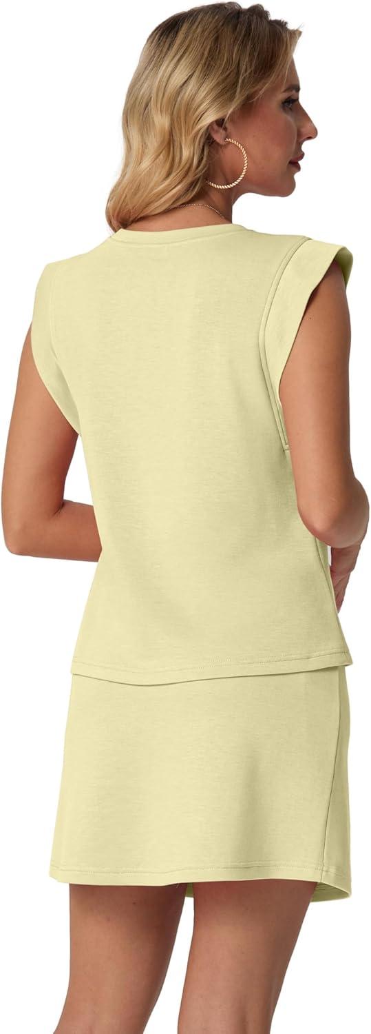 GRECERELLE 2026 Women's Summer 2 Piece Skort Set Cap Sleeve Round Neck Top & Tennis Skirt with Pockets for Athletic & Casual(Butter Yellow)