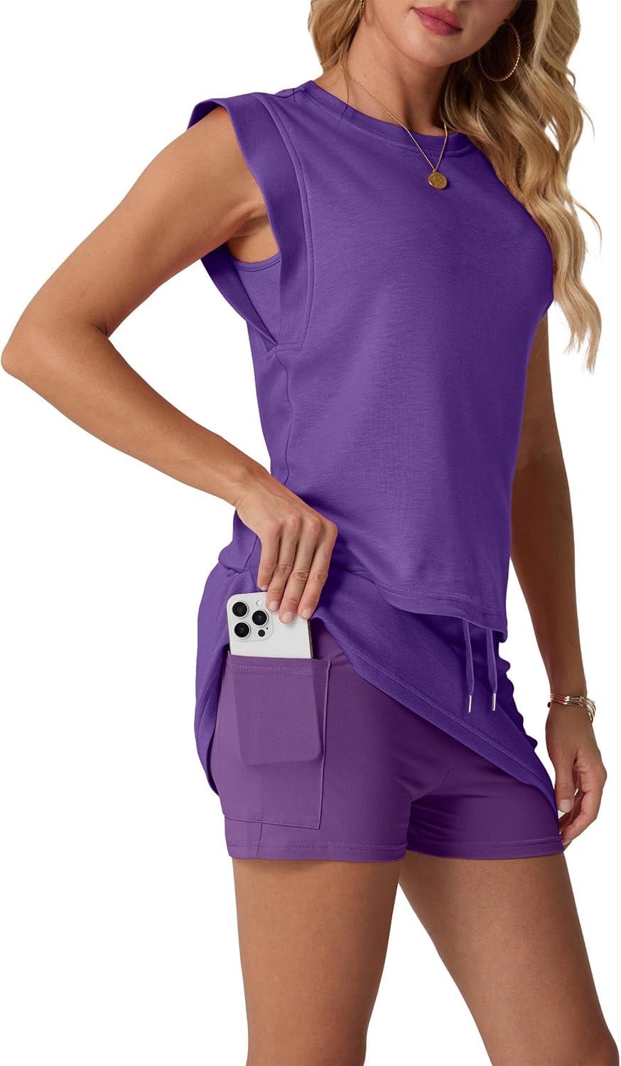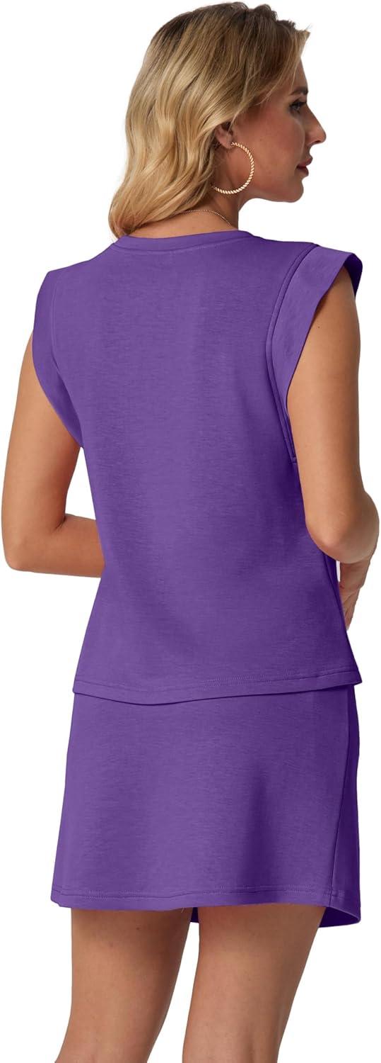 GRECERELLE 2026 Women's Summer 2 Piece Skort Set Cap Sleeve Round Neck Top & Tennis Skirt with Pockets for Athletic & Casual(Dark Purple)