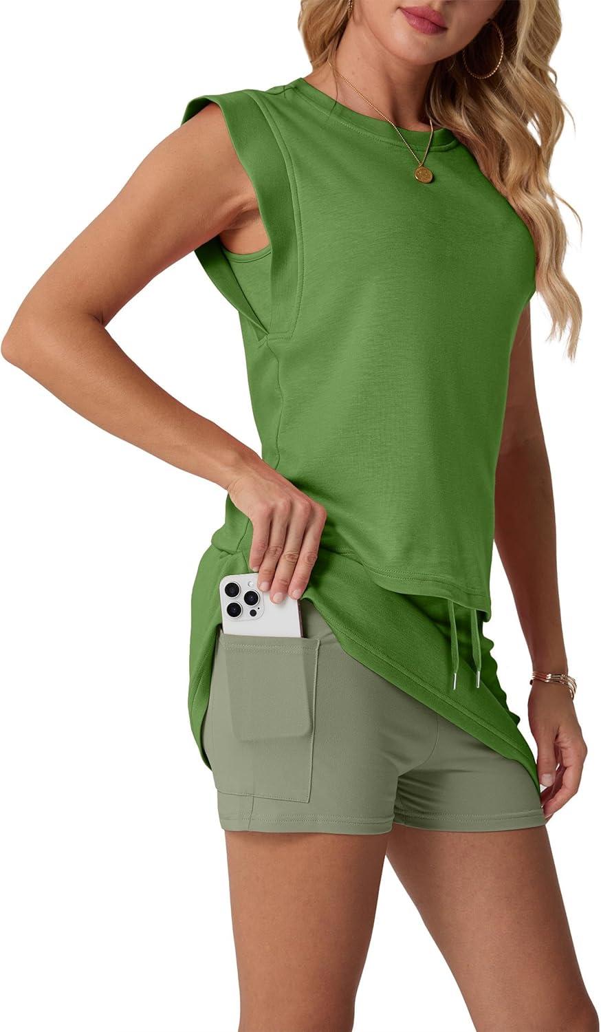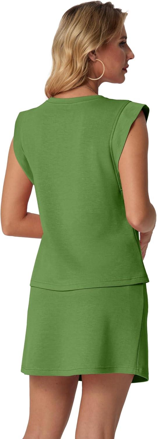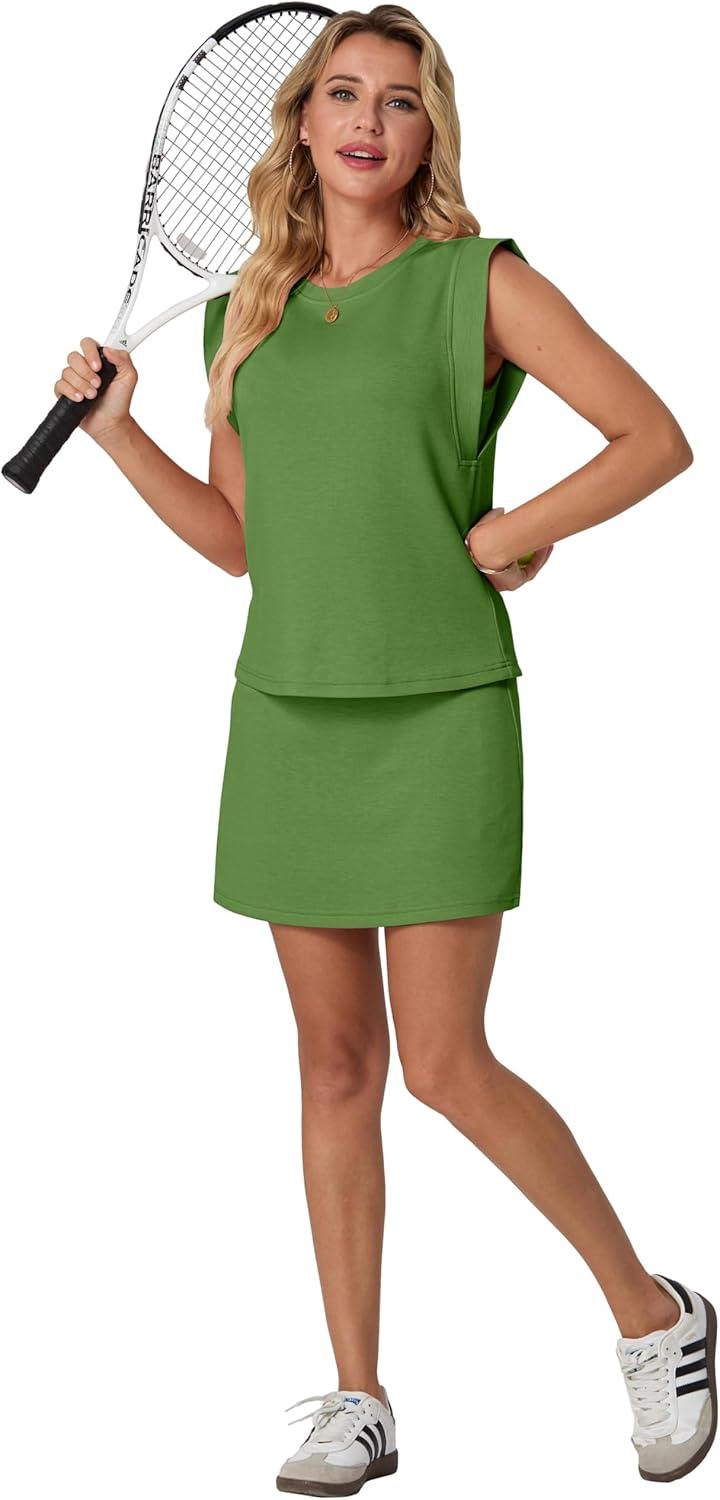 GRECERELLE 2026 Women's Summer 2 Piece Skort Set Cap Sleeve Round Neck Top & Tennis Skirt with Pockets for Athletic & Casual(Dill Green)