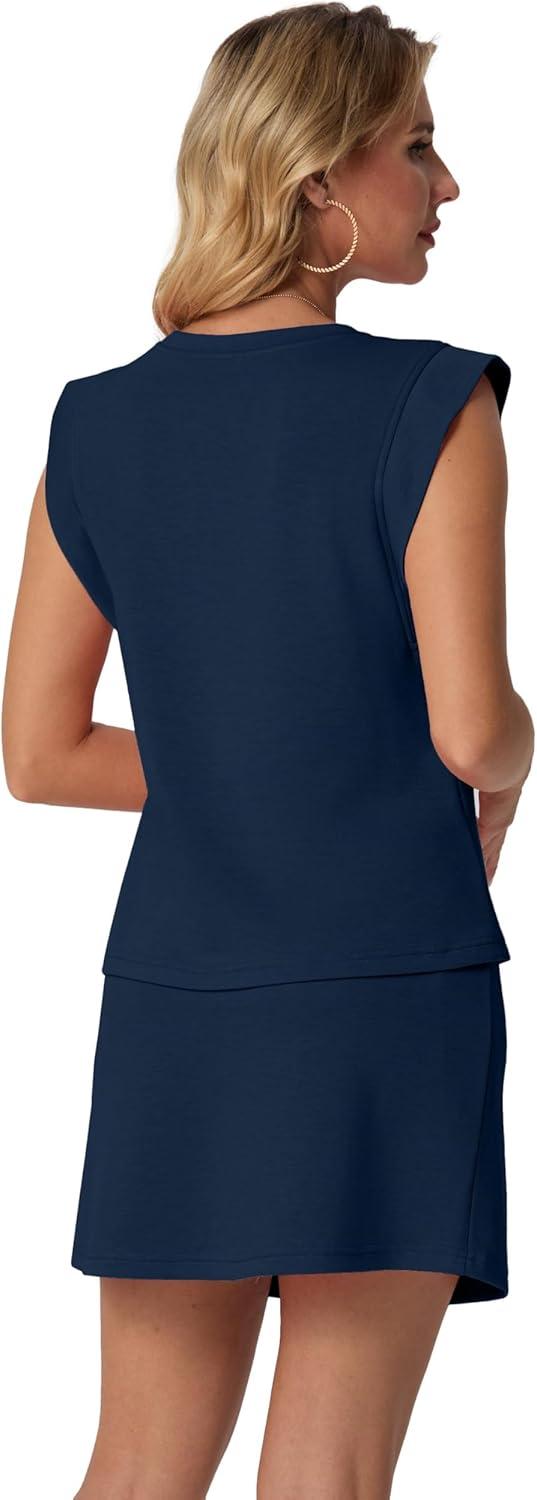GRECERELLE 2026 Women's Summer 2 Piece Skort Set Cap Sleeve Round Neck Top & Tennis Skirt with Pockets for Athletic & Casual(Navy Blue)