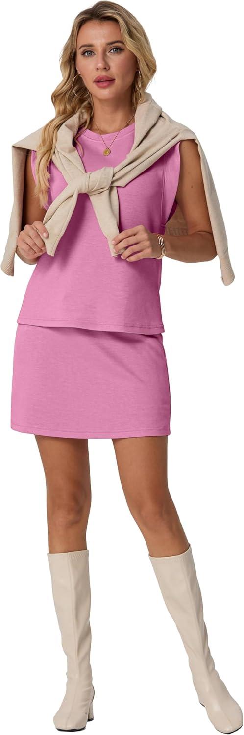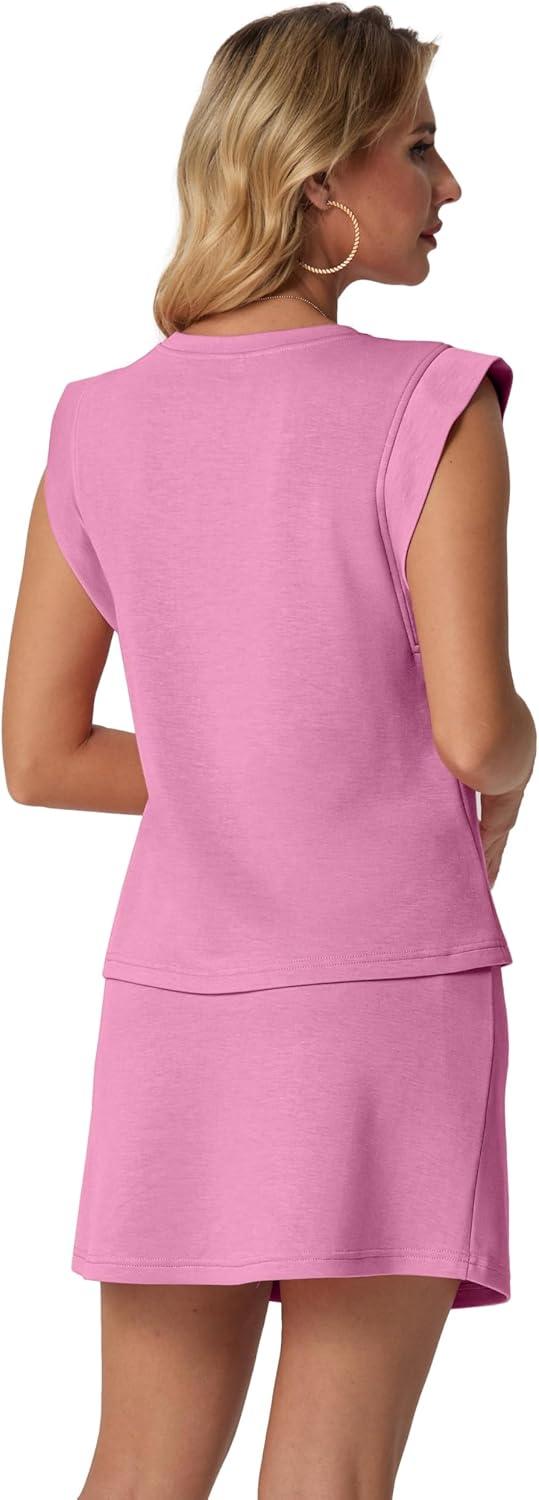 GRECERELLE 2026 Women's Summer 2 Piece Skort Set Cap Sleeve Round Neck Top & Tennis Skirt with Pockets for Athletic & Casual(Rose Red)