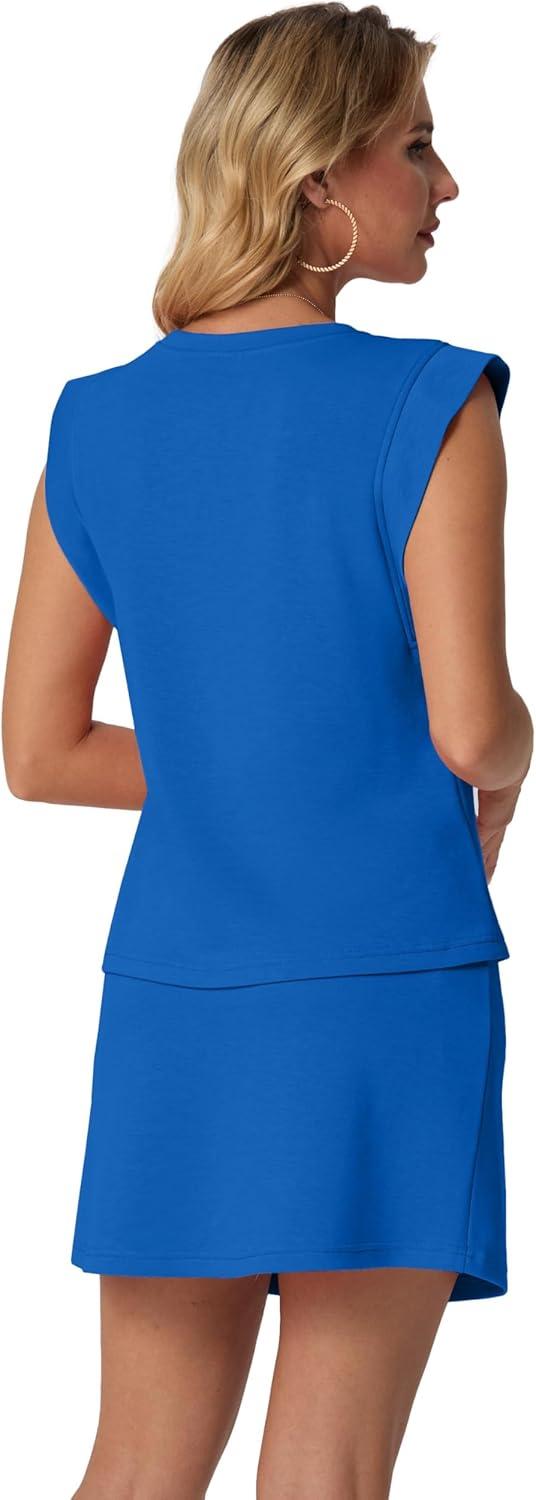 GRECERELLE 2026 Women's Summer 2 Piece Skort Set Cap Sleeve Round Neck Top & Tennis Skirt with Pockets for Athletic & Casual(Royal Blue)
