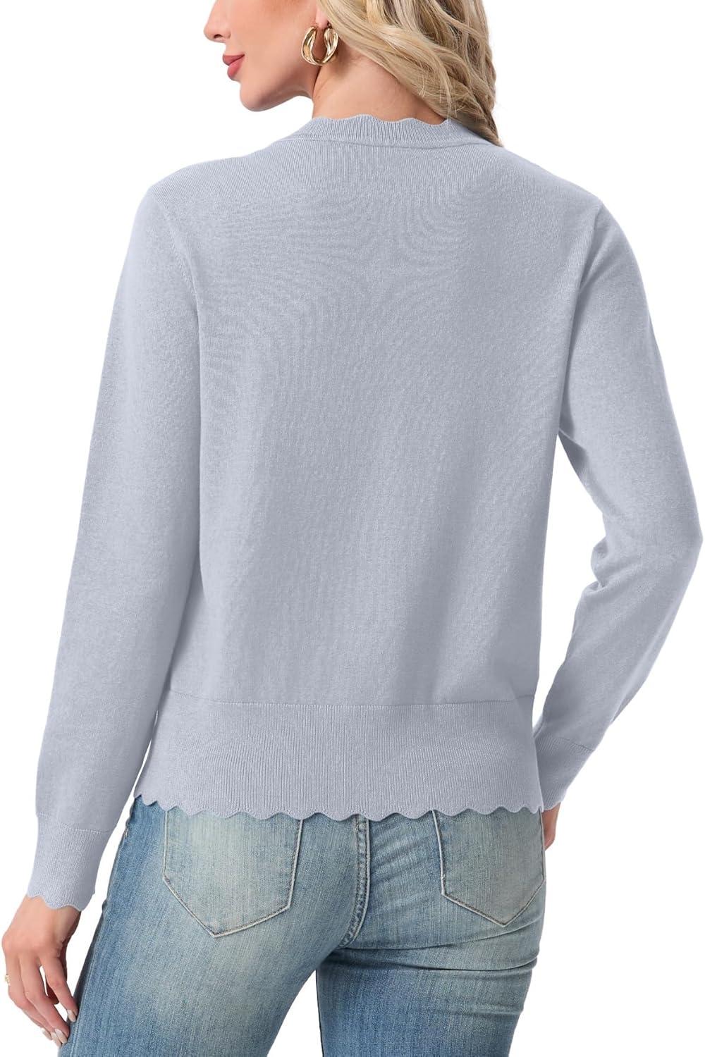 GRECERELLE Cardigan Sweaters for Women Lightweight Crewneck Button Down Soft Knit Dressy Cardigans 2026(Gray Blue)