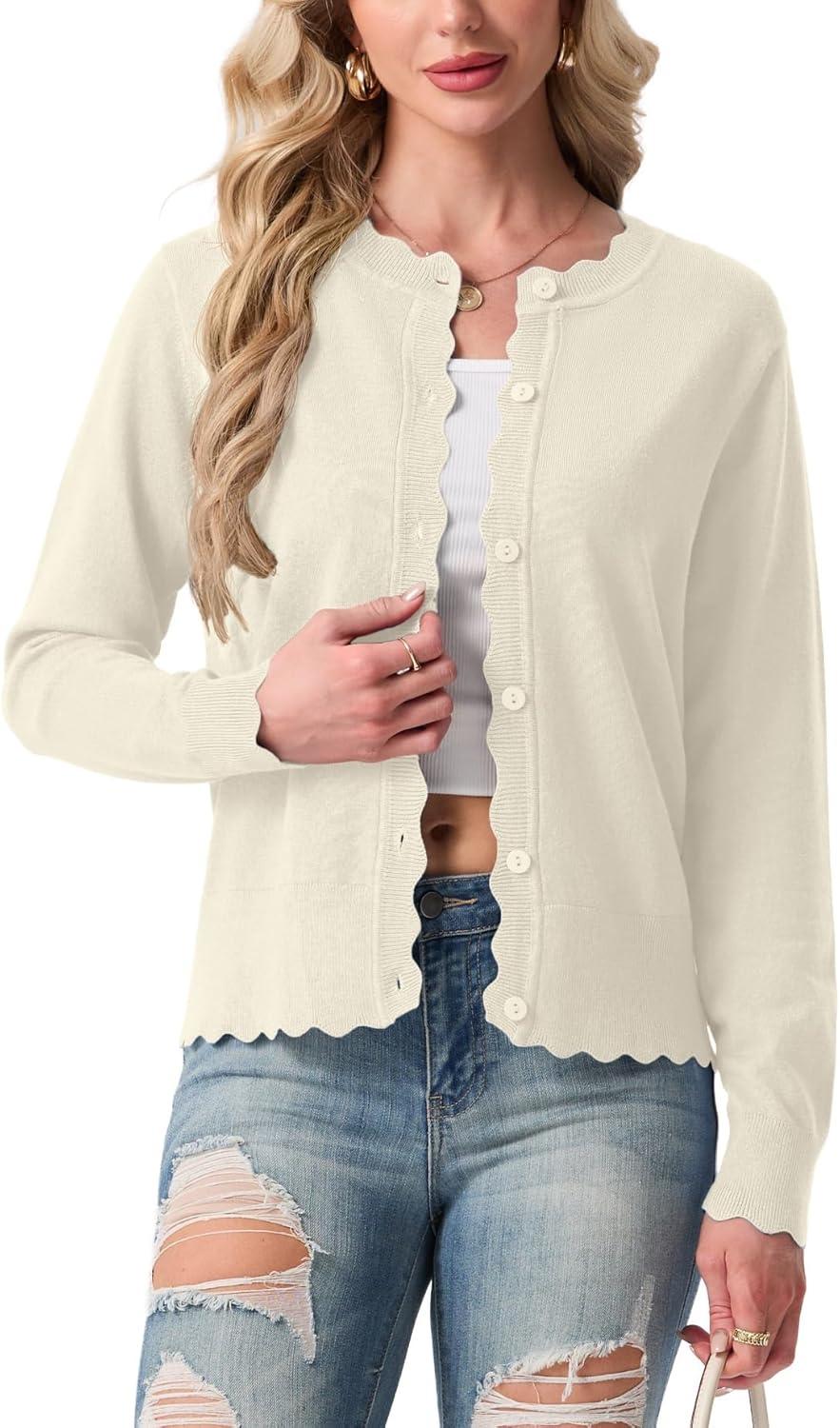 GRECERELLE Cardigan Sweaters for Women Lightweight Crewneck Button Down Soft Knit Dressy Cardigans 2026(Oatmeal)