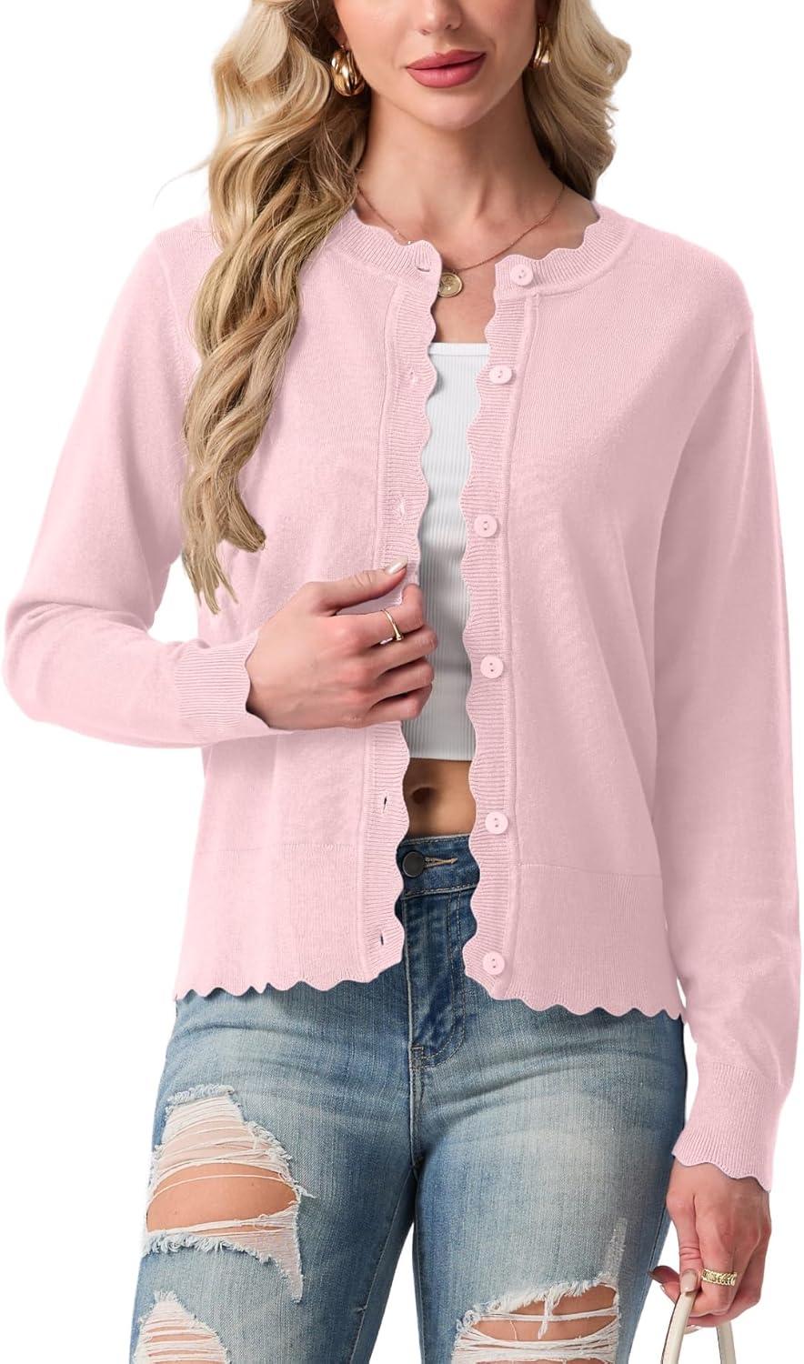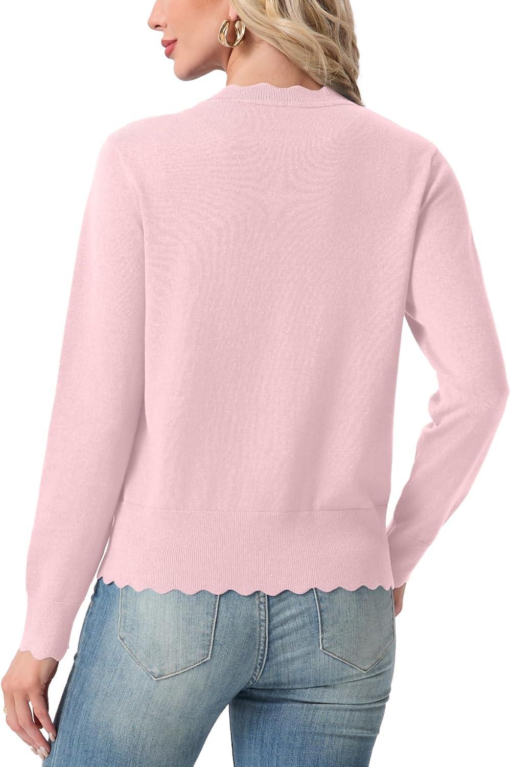 GRECERELLE Cardigan Sweaters for Women Lightweight Crewneck Button Down Soft Knit Dressy Cardigans 2026(Pink White)