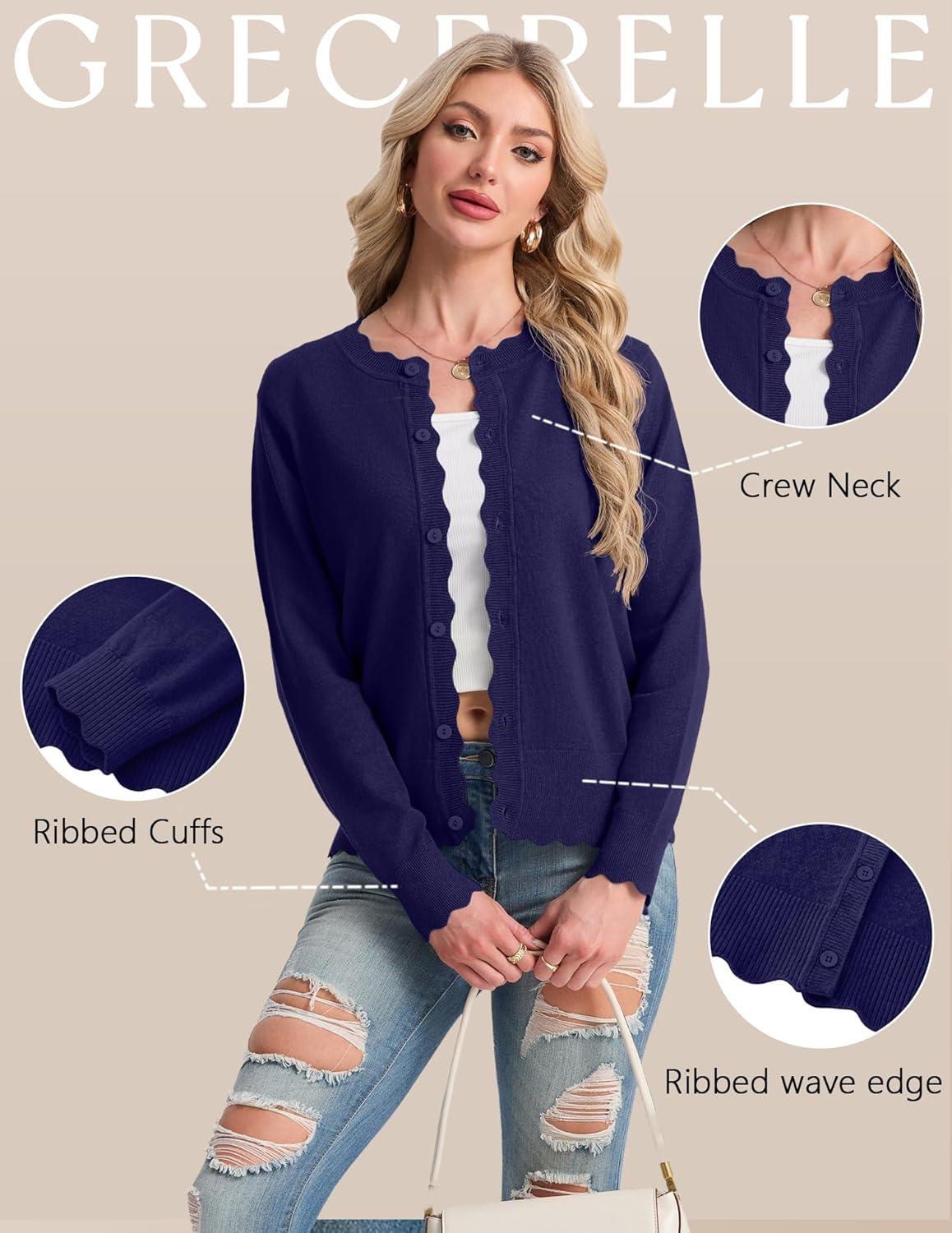 GRECERELLE Cardigan Sweaters for Women Lightweight Crewneck Button Down Soft Knit Dressy Cardigans 2026(Oatmeal)