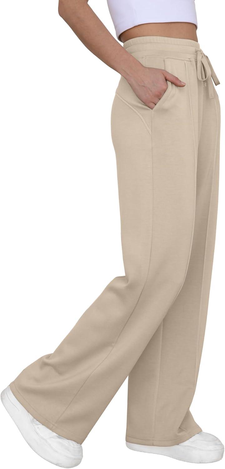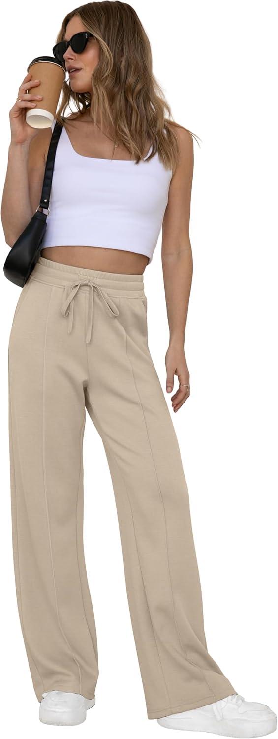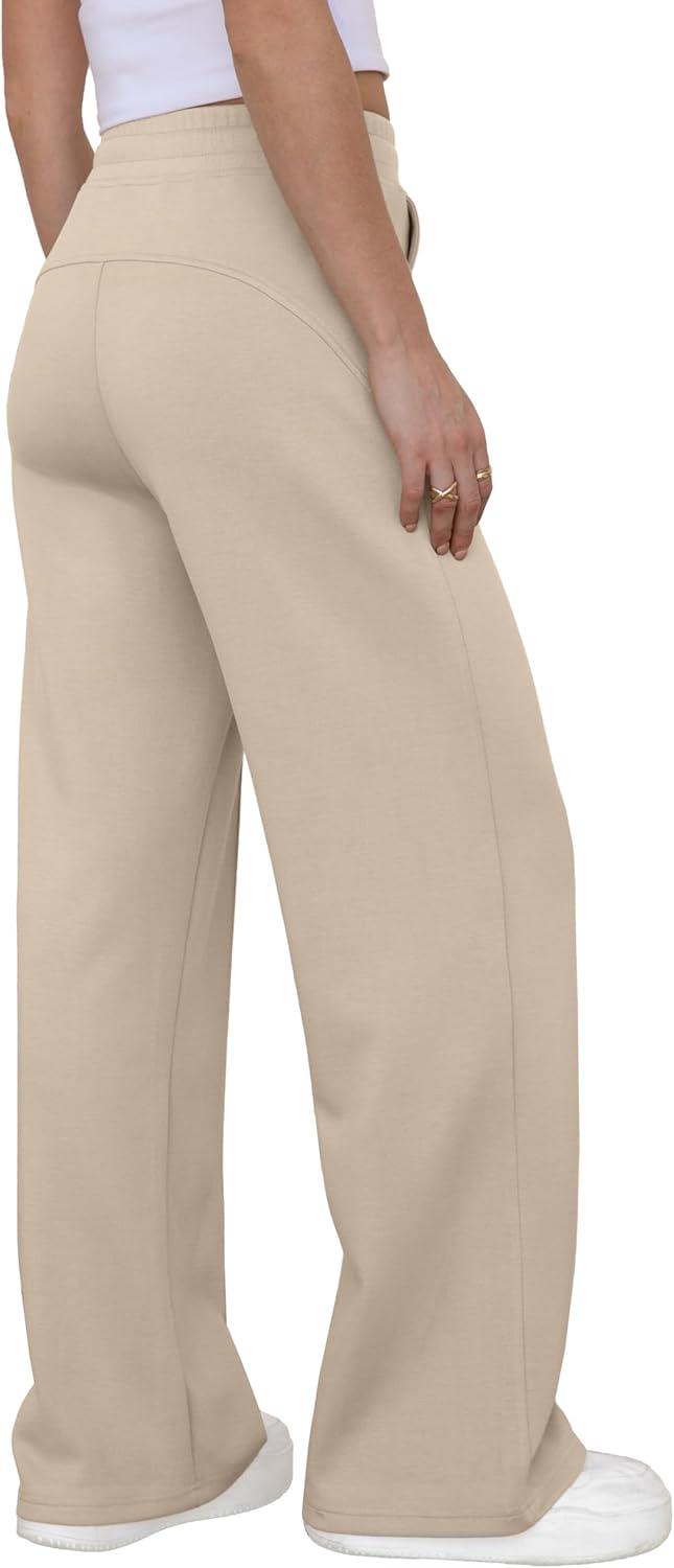 GRECERELLE Sweatpants Women Wide Leg High Waisted Baggy Pants Drawstring Workout Active Joggers Lounge Pants(White)
