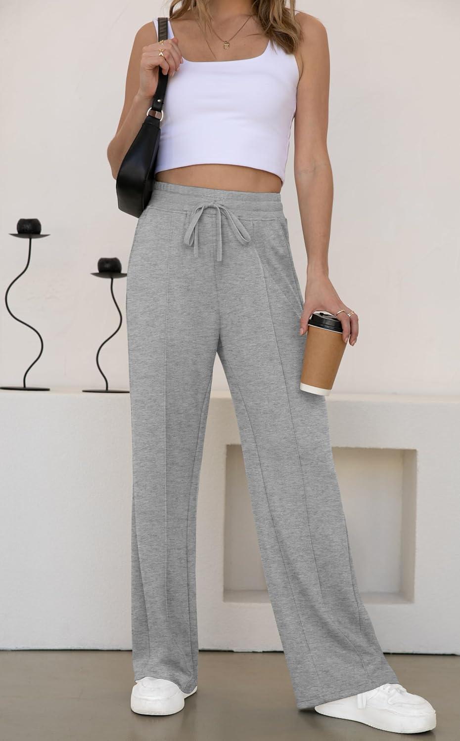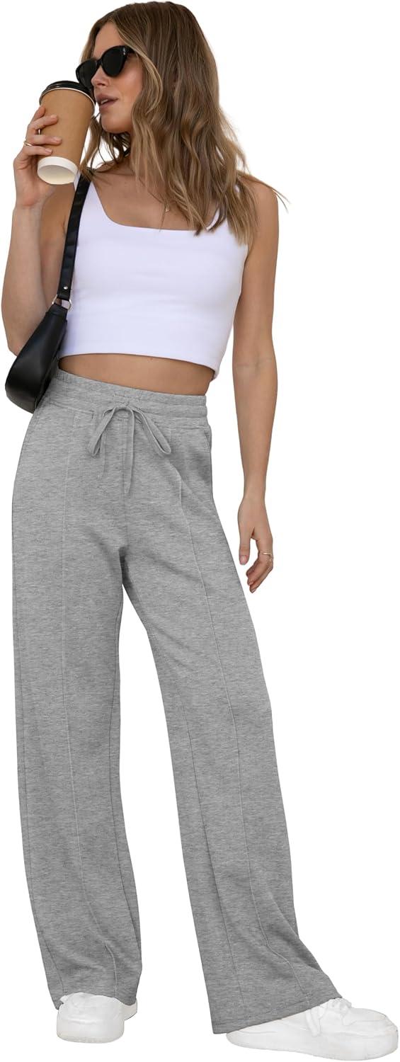 GRECERELLE Sweatpants Women Wide Leg High Waisted Baggy Pants Drawstring Workout Active Joggers Lounge Pants(Gray)