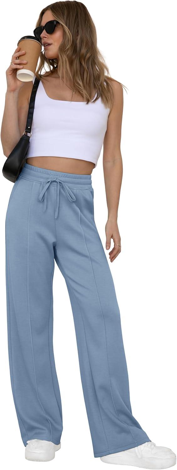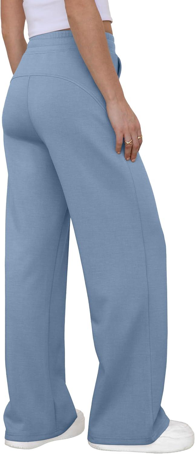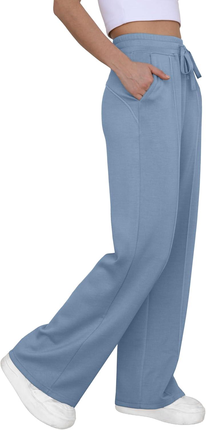 GRECERELLE Sweatpants Women Wide Leg High Waisted Baggy Pants Drawstring Workout Active Joggers Lounge Pants(Haze Blue)
