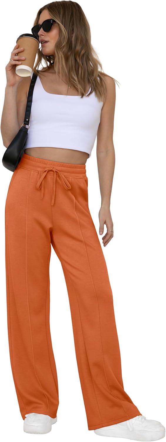 GRECERELLE Sweatpants Women Wide Leg High Waisted Baggy Pants Drawstring Workout Active Joggers Lounge Pants(Orange)