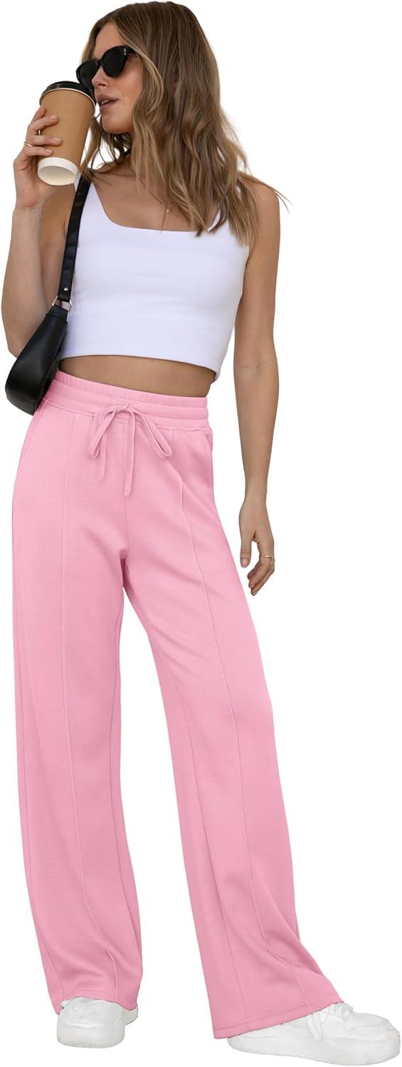 GRECERELLE Sweatpants Women Wide Leg High Waisted Baggy Pants Drawstring Workout Active Joggers Lounge Pants(Pink)