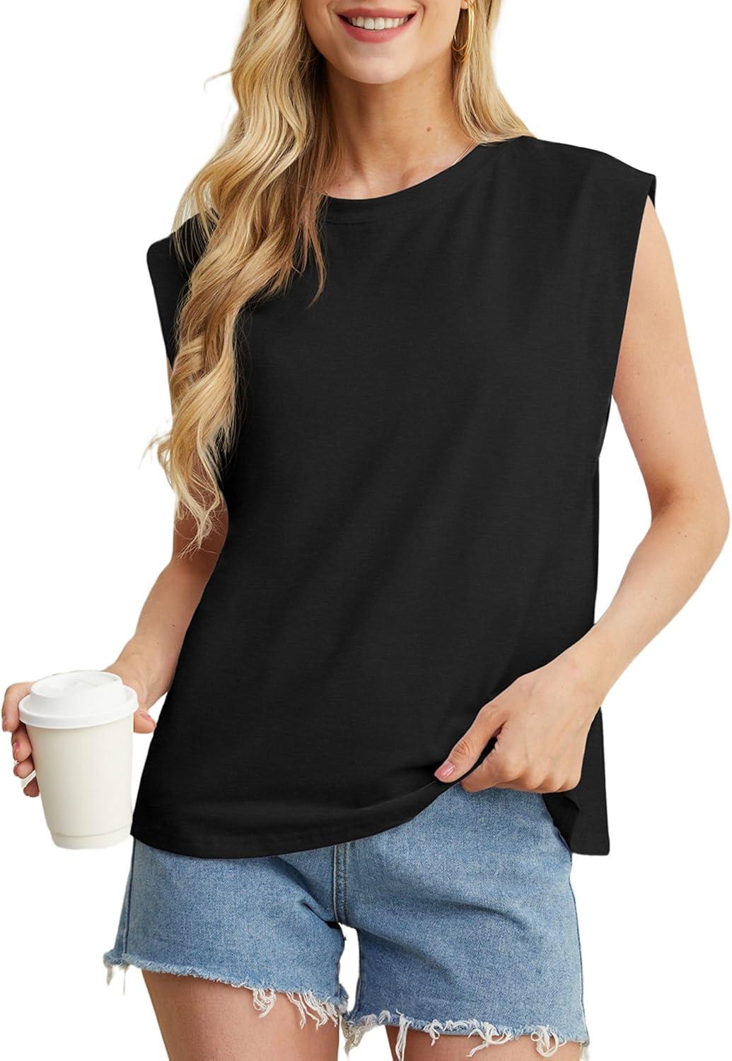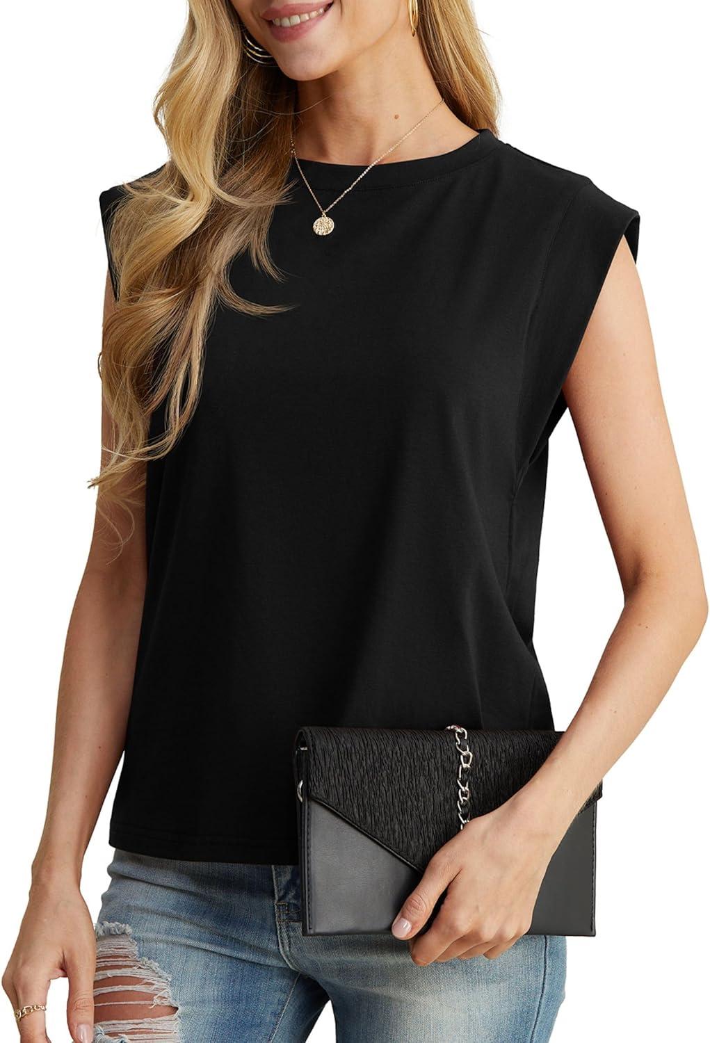 GRECERELLE Women 2025 Cap Sleeve Tops Summer Casual Tee Shirt Loose Crew Neck Basic Tank Trendy Work Vacation Outfits (S-2XL)(02 Black)
