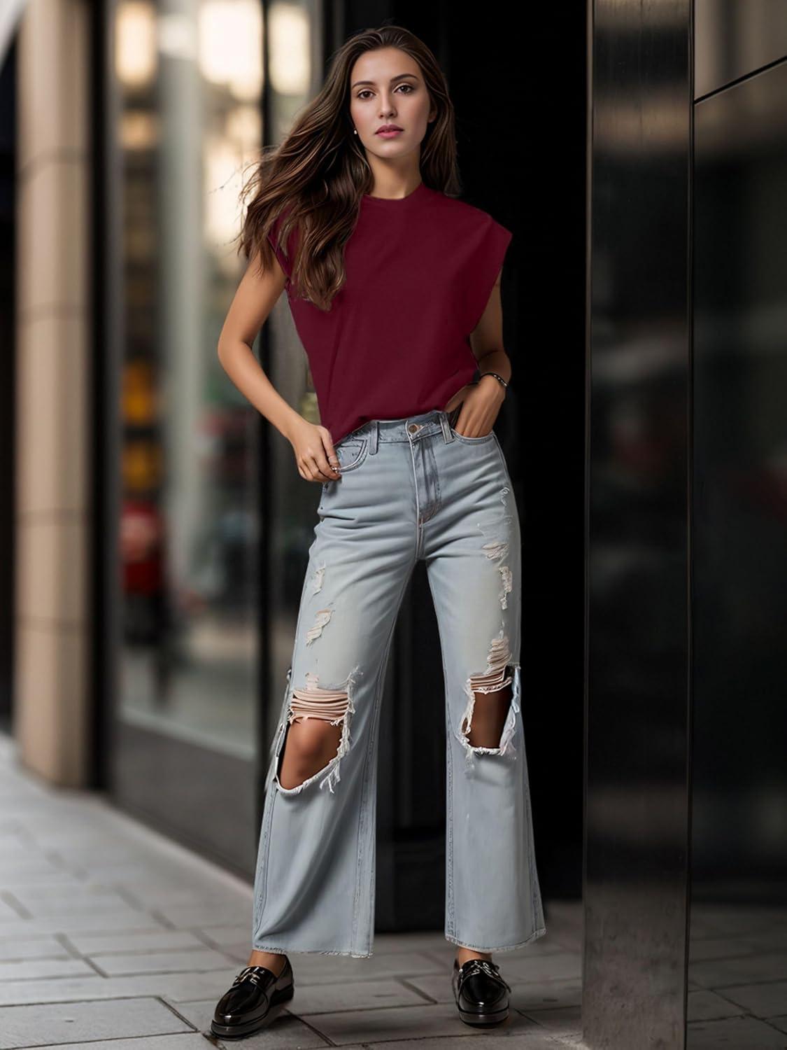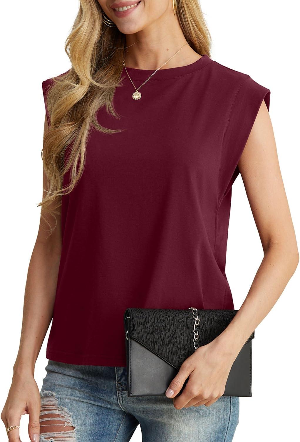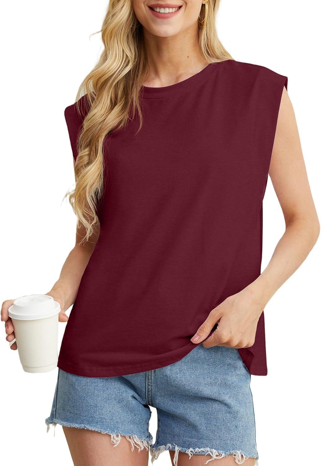 GRECERELLE Women 2025 Cap Sleeve Tops Summer Casual Tee Shirt Loose Crew Neck Basic Tank Trendy Work Vacation Outfits (S-2XL)(Burgundy)