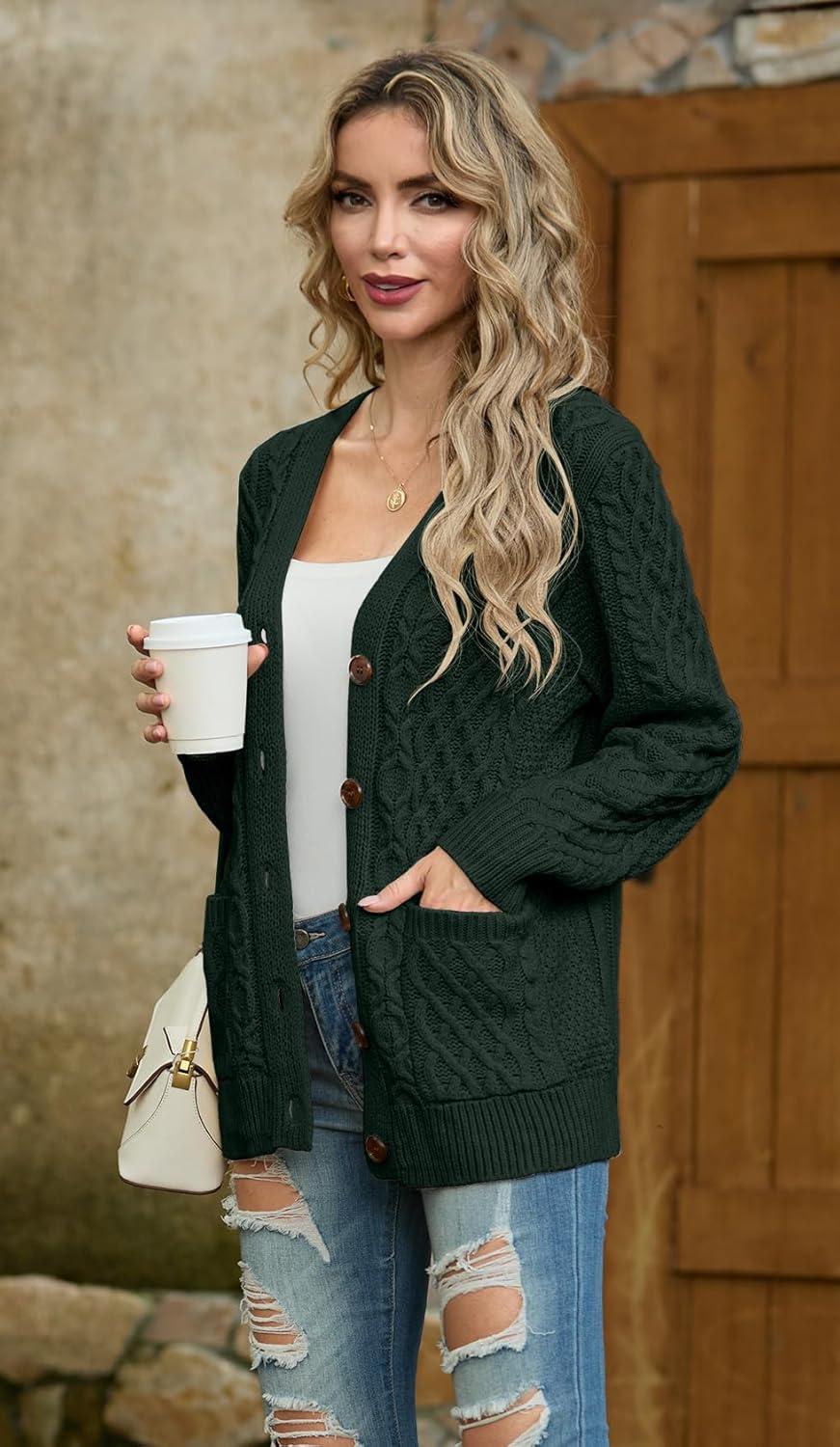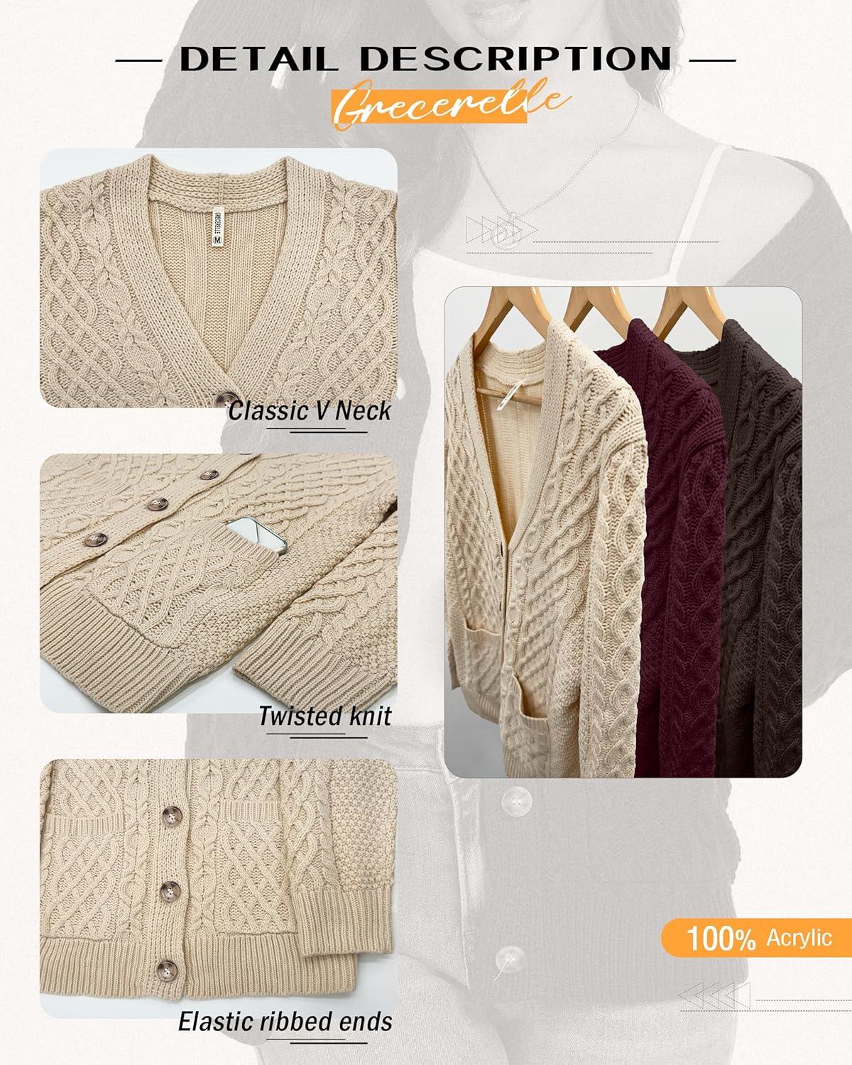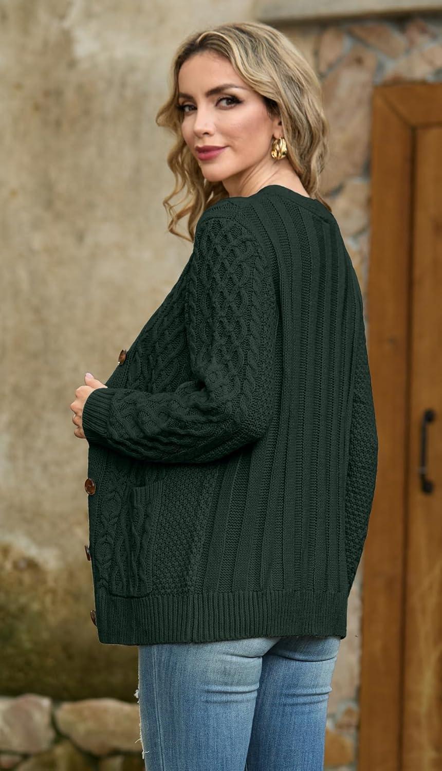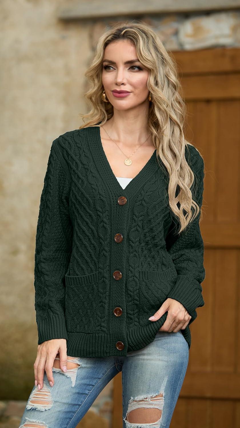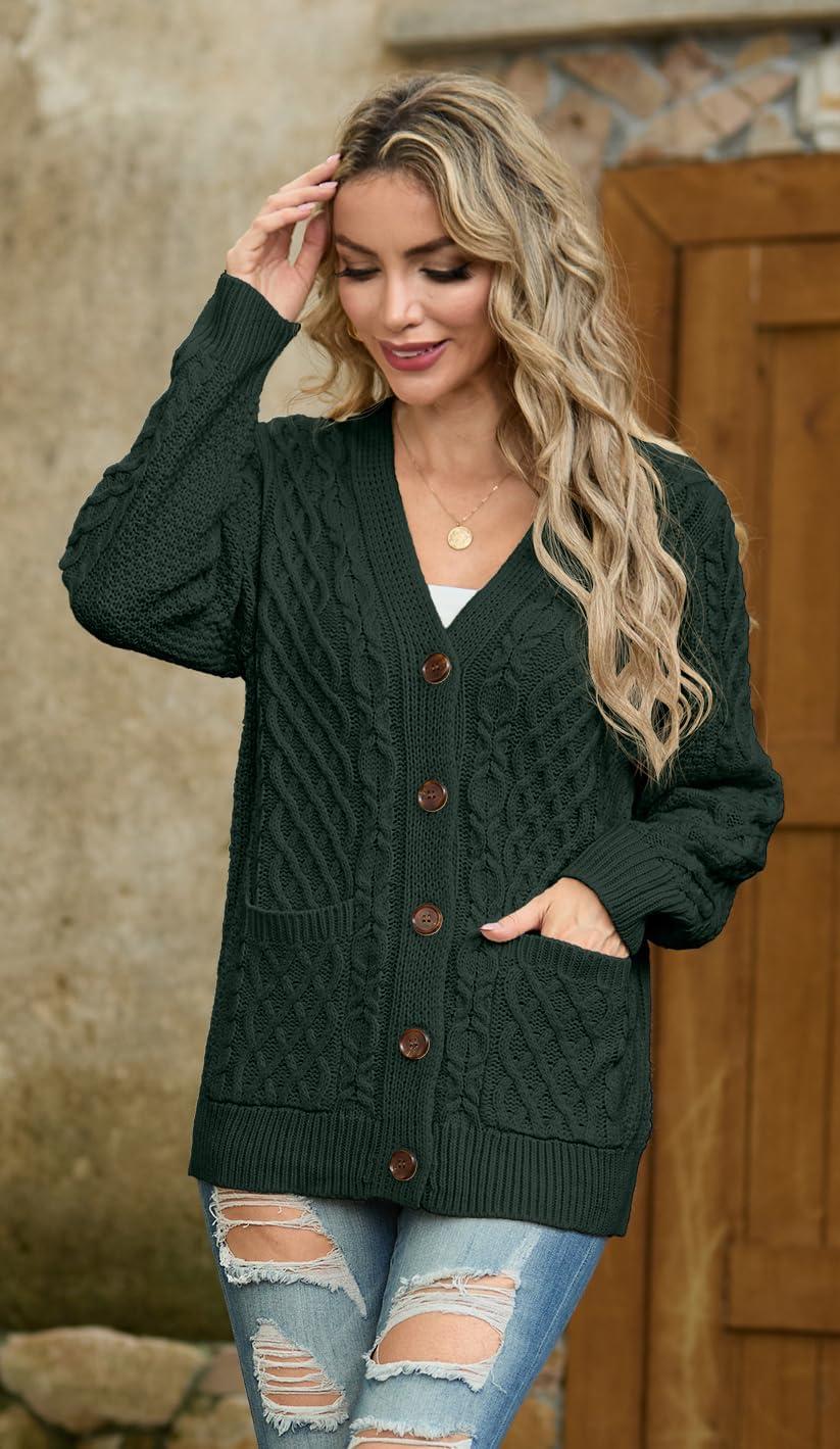 Be the first to review “GRECERELLE Women 2025 Fall Long Sleeve Cable Knit Sweater Button Open Front Cardigan Loose Outerwear Coat with Pockets(Dark Green)”
