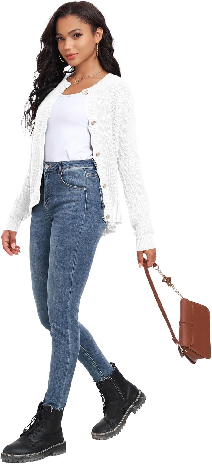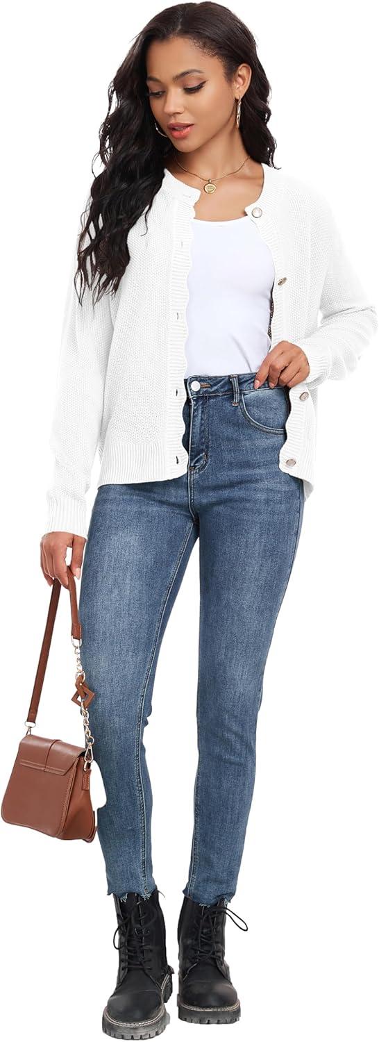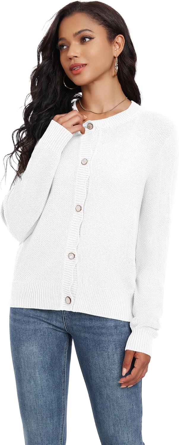 GRECERELLE Women Knit Cardigan Sweaters Long Sleeve Open Front Button Down Casual Trendy Jackets Outwear(White)