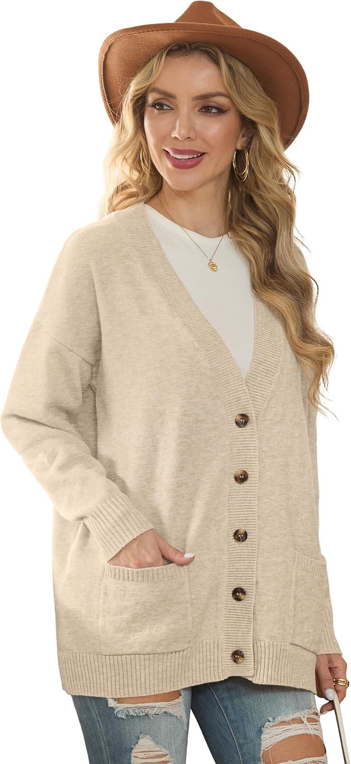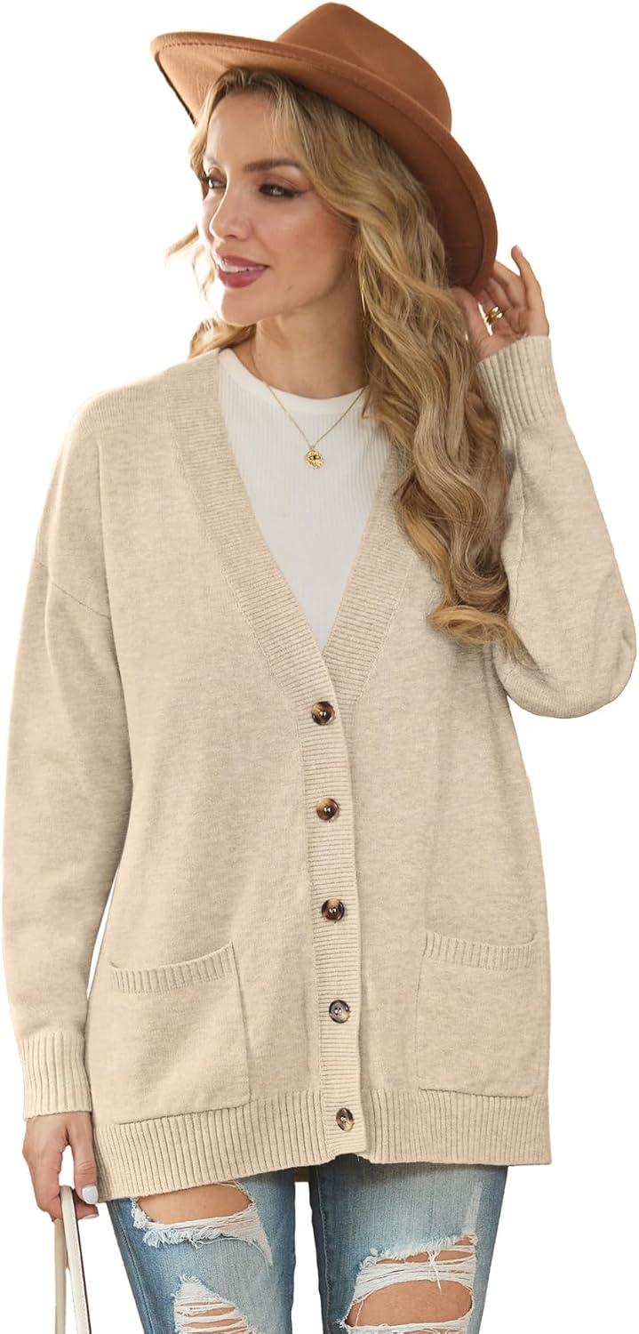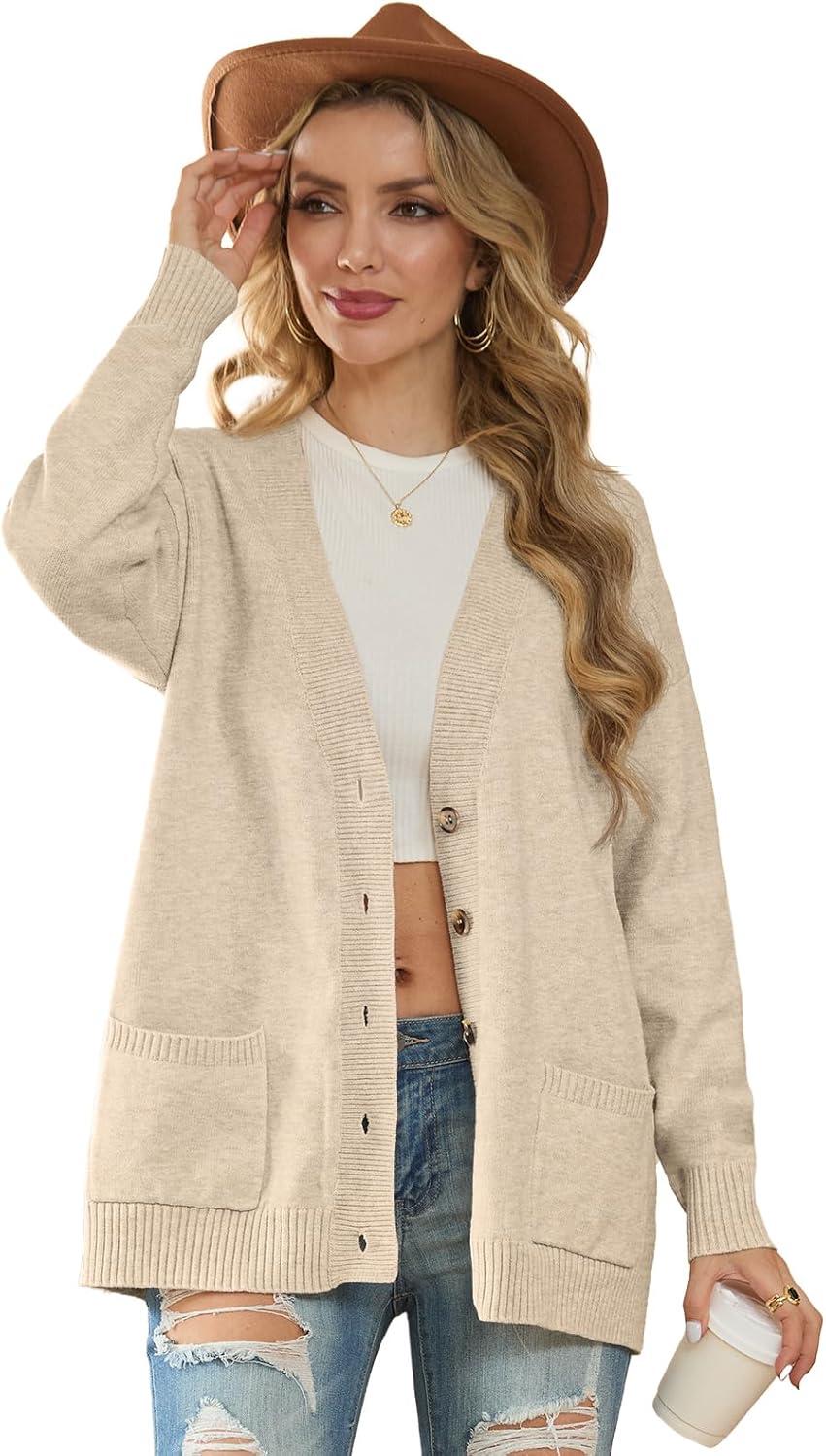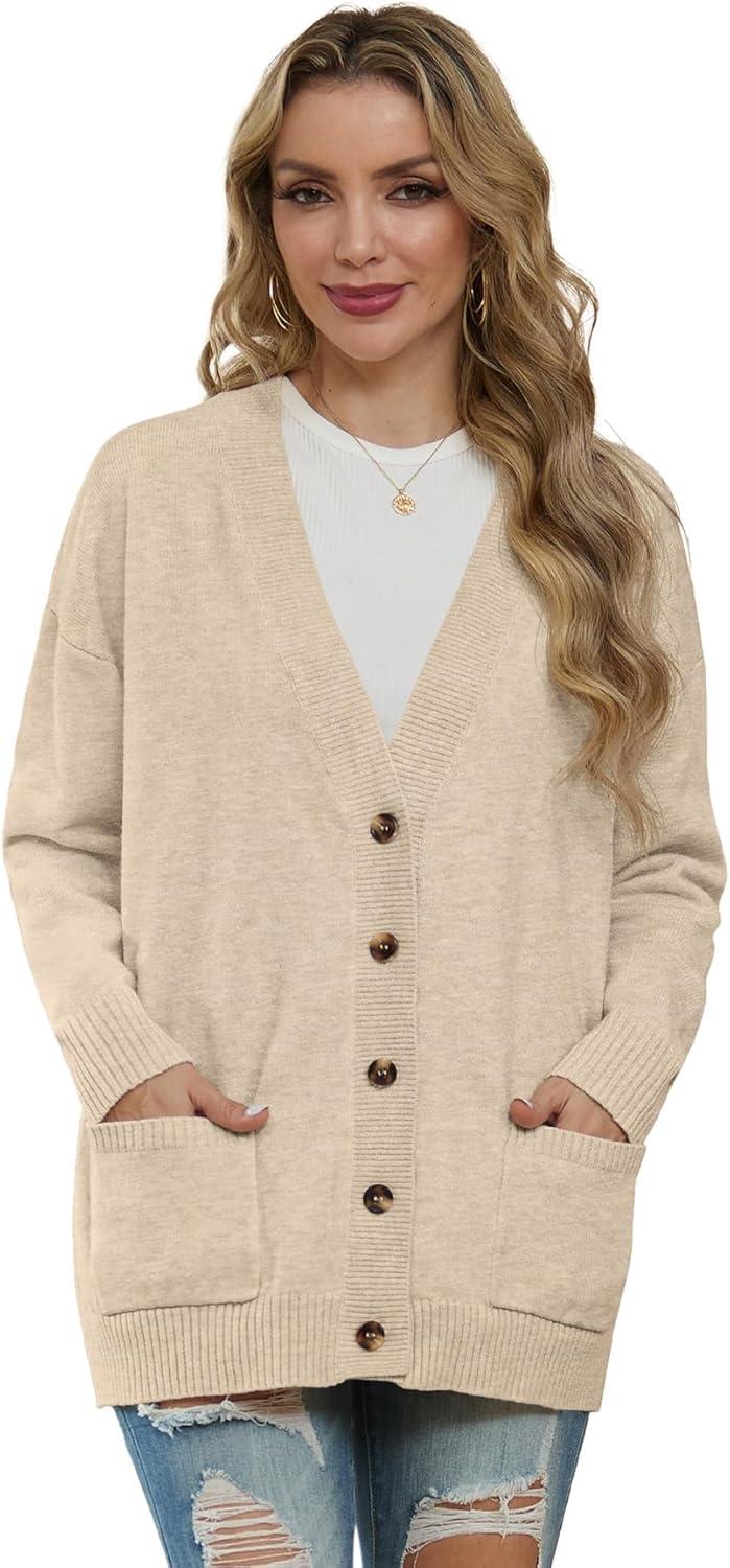 GRECERELLE Women’s 2024 Fall Cardigan Sweaters Oversized Open Front Button Knit Outwear Coats with Pockets(Apricot)