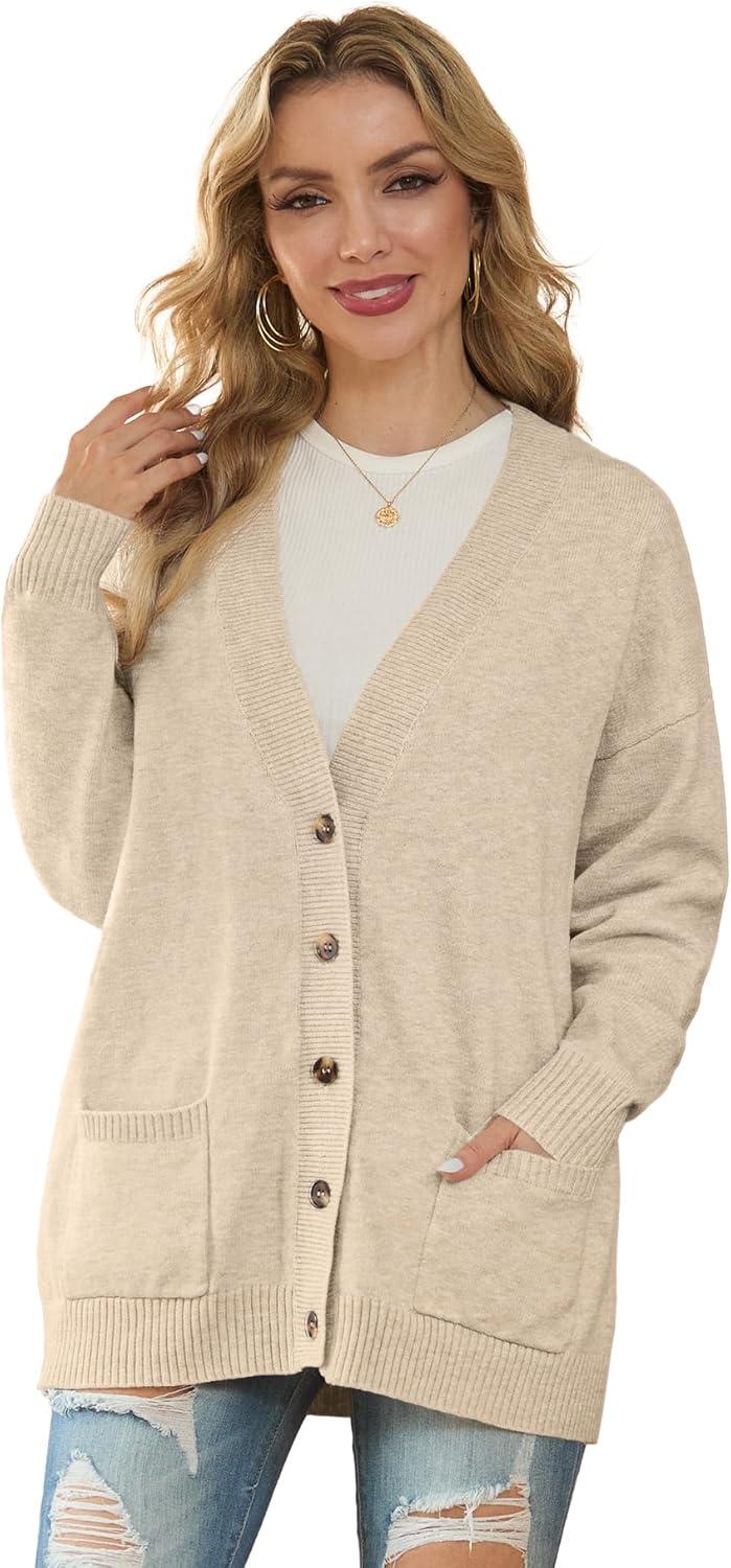 GRECERELLE Women's 2024 Fall Cardigan Sweaters Oversized Open Front Button Knit Outwear Coats with Pockets(Apricot)
