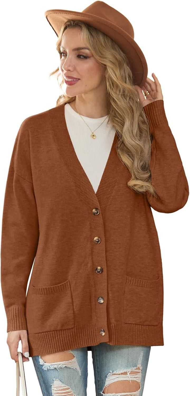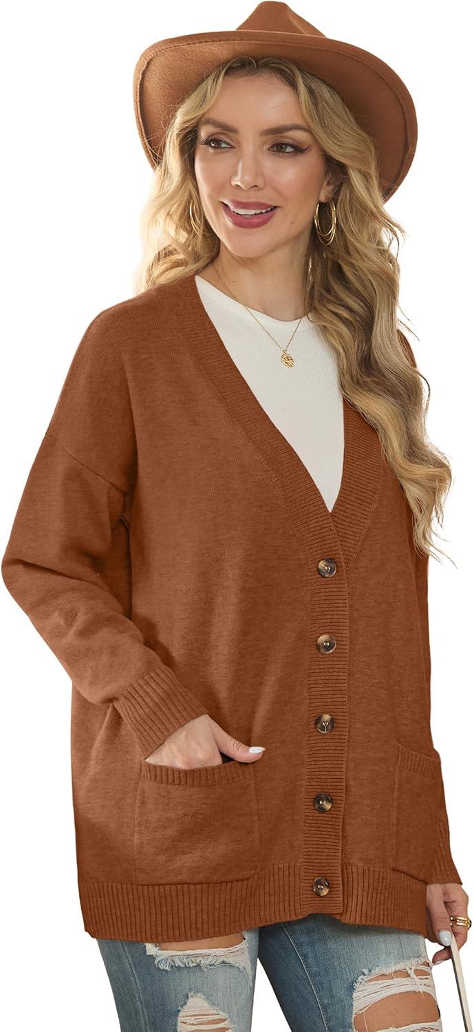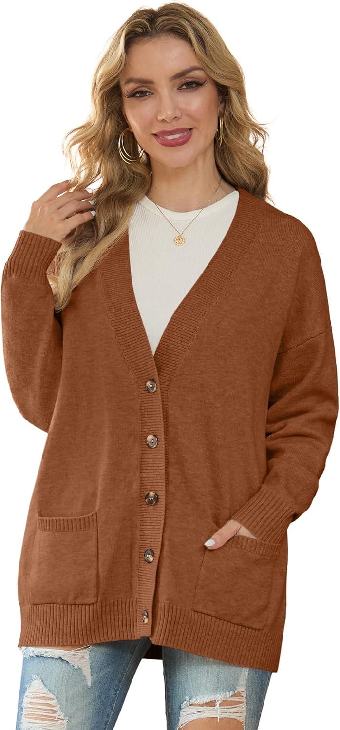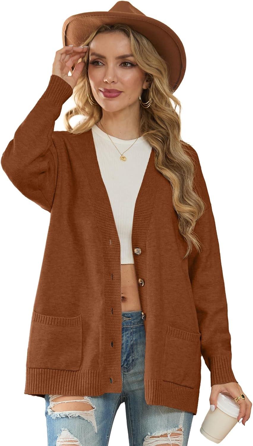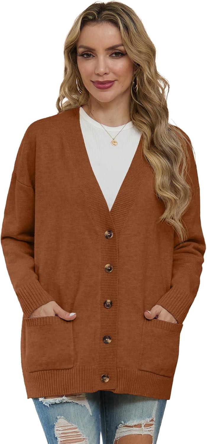 GRECERELLE Women’s 2024 Fall Cardigan Sweaters Oversized Open Front Button Knit Outwear Coats with Pockets(Pumpkin)