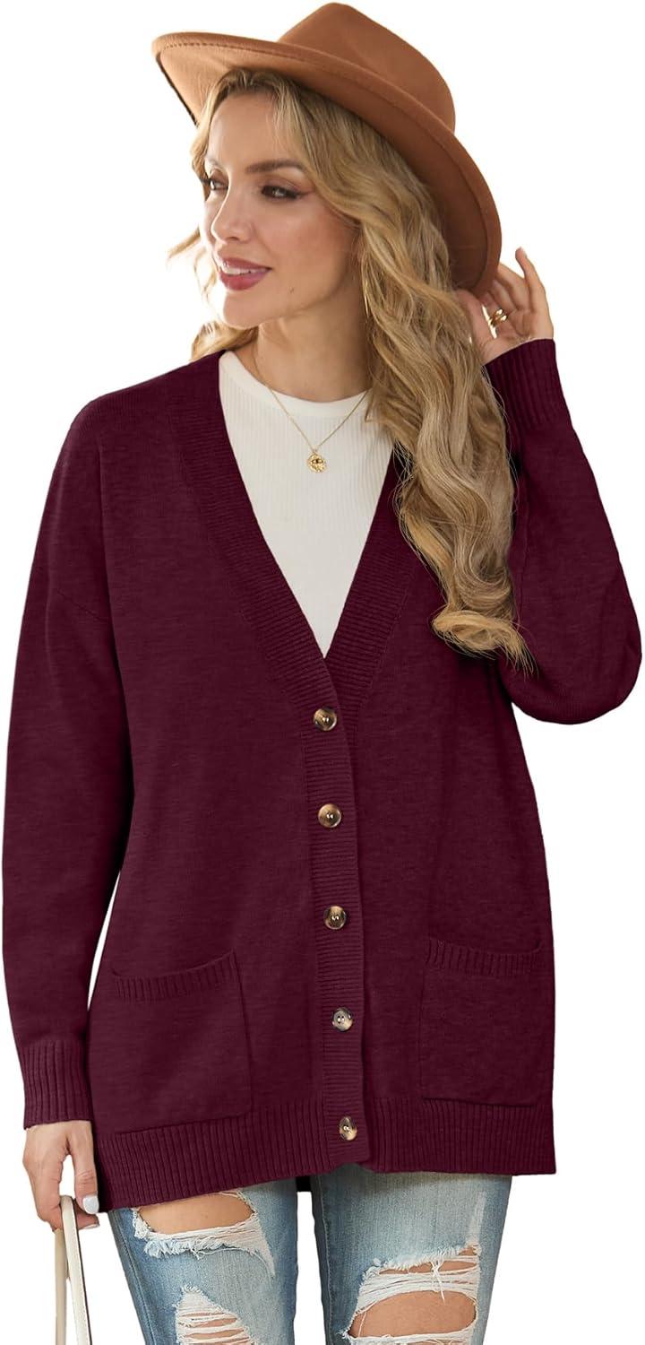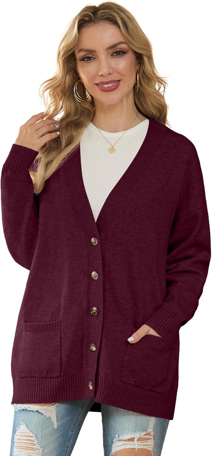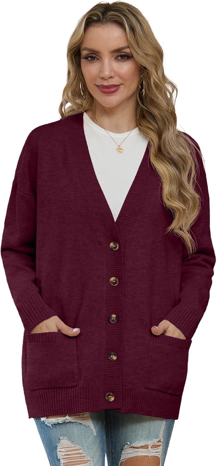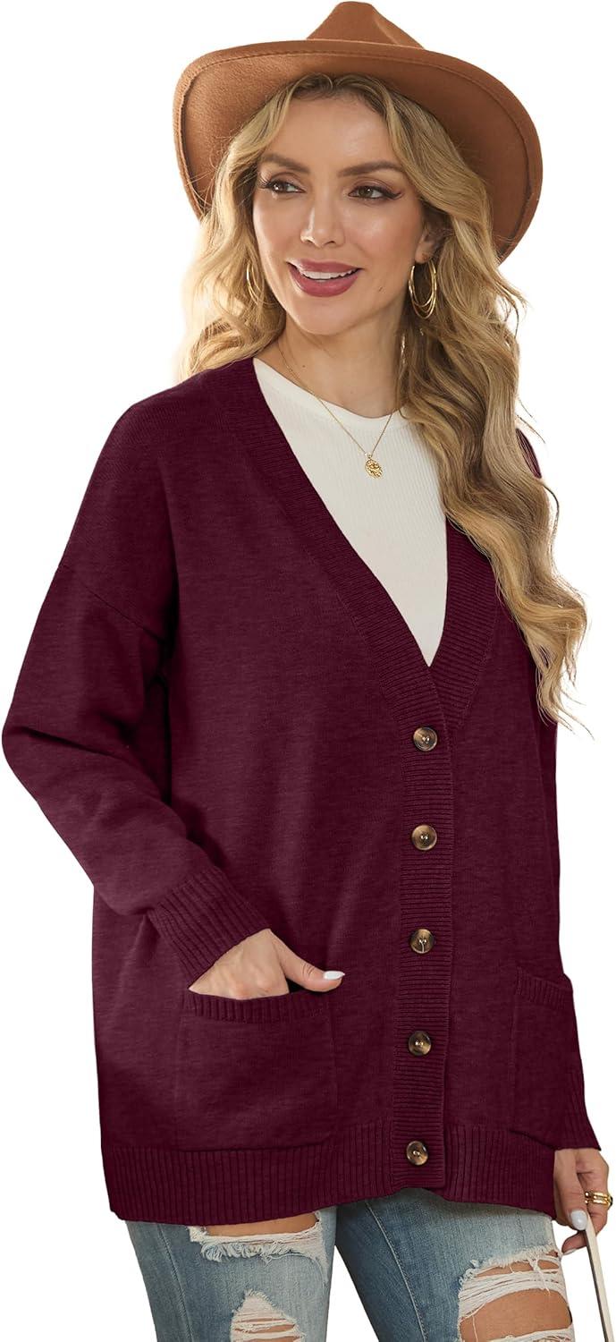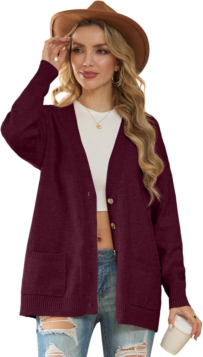 GRECERELLE Women's 2024 Fall Cardigan Sweaters Oversized Open Front Button Knit Outwear Coats with Pockets(Wine Red)