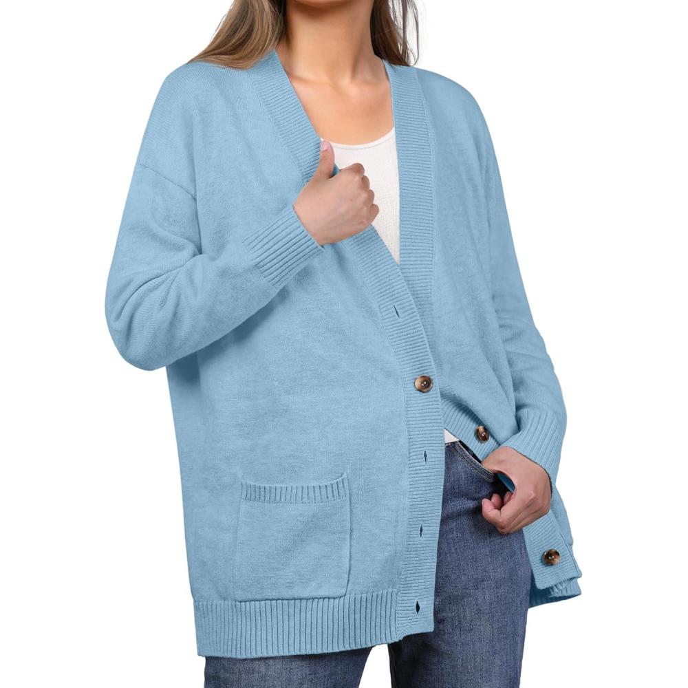 GRECERELLE Women’s 2025 Fall Cardigan Sweaters Oversized Open Front Button Knit Outwear Coats with Pockets(Light Blue)