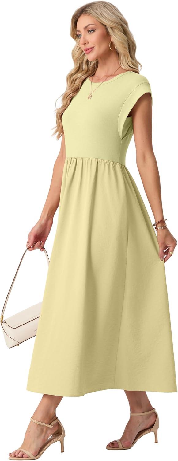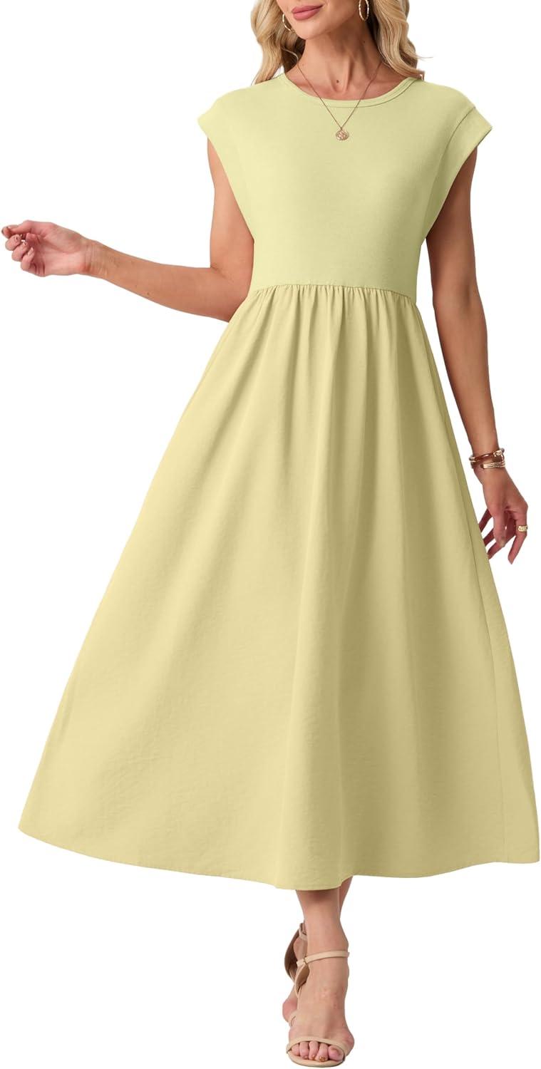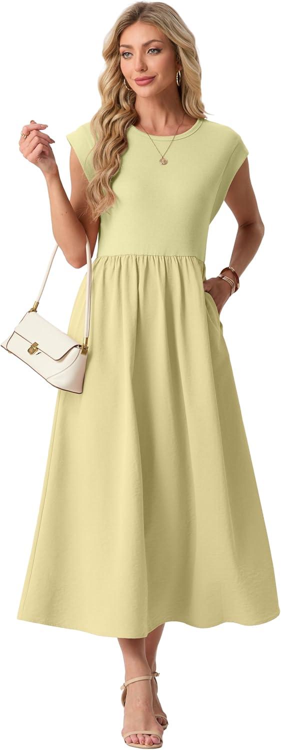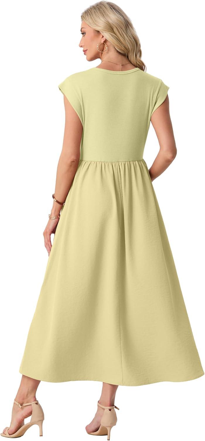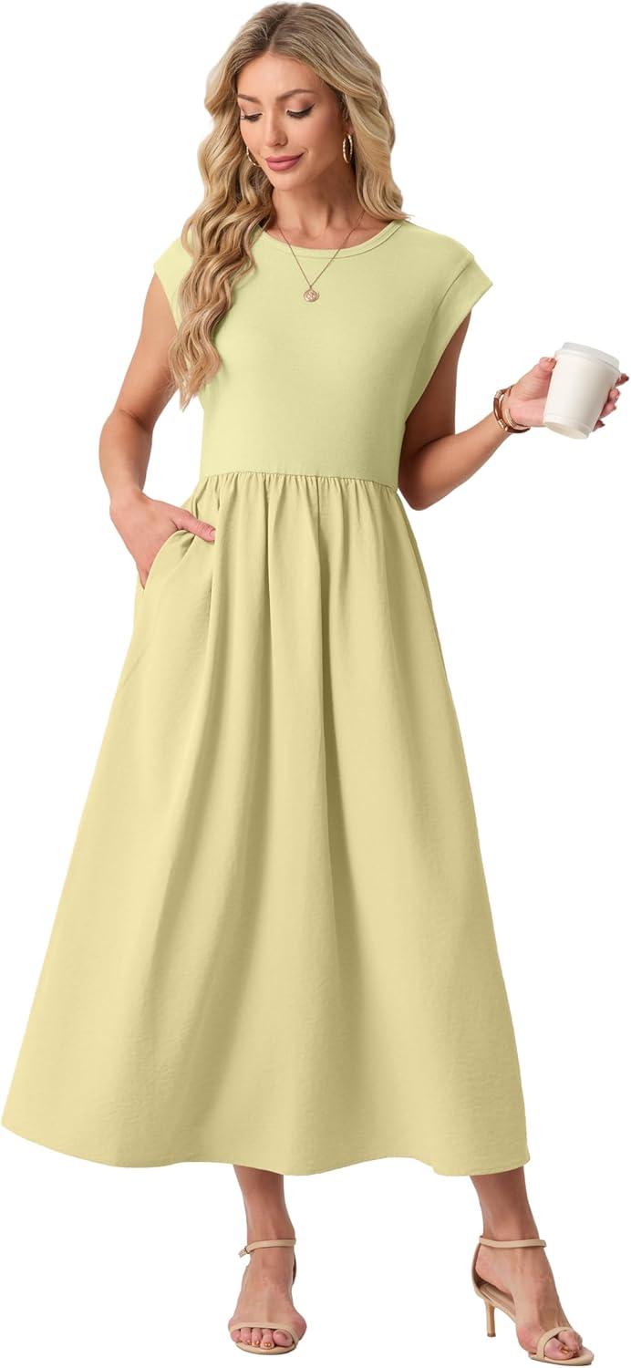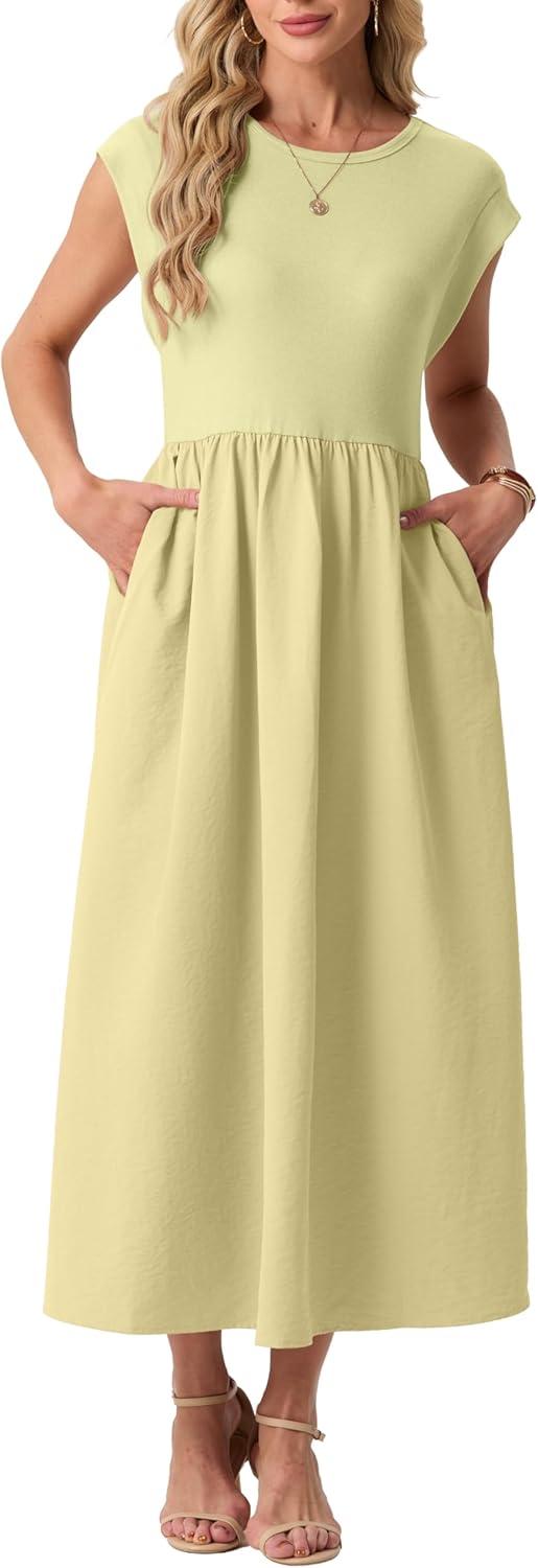 GRECERELLE Women's Summer Round Neck Loose Casual Long Maxi Vacation Dress with Pockets