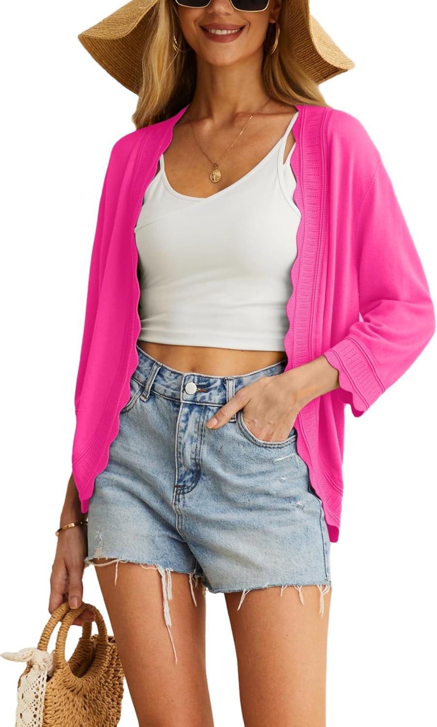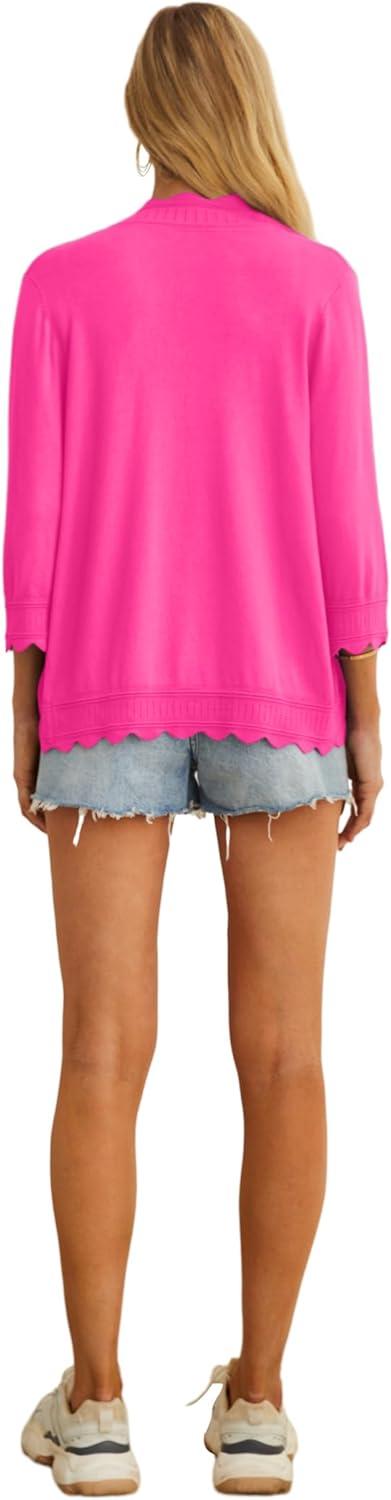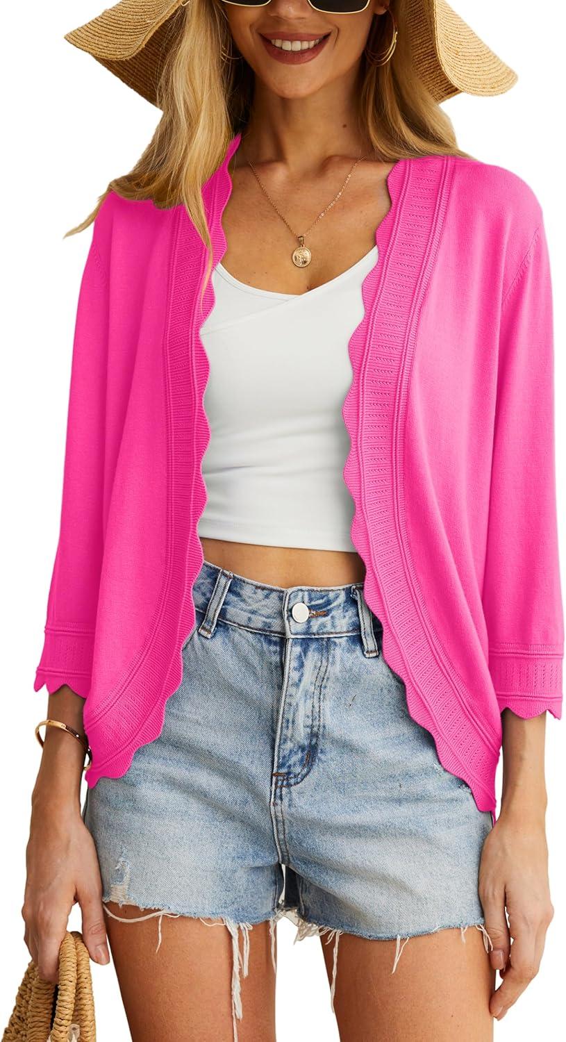 GRECERELLE Women’s 3/4 Sleeve Summer Cardigan Lightweight Casual Open-Front Cropped Shrug Sweaters for Women(Hot Pink)