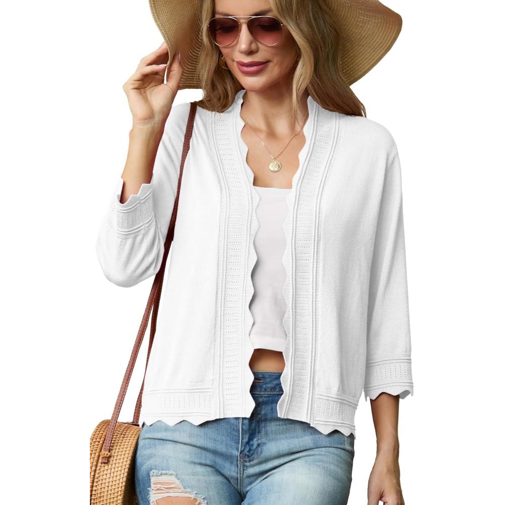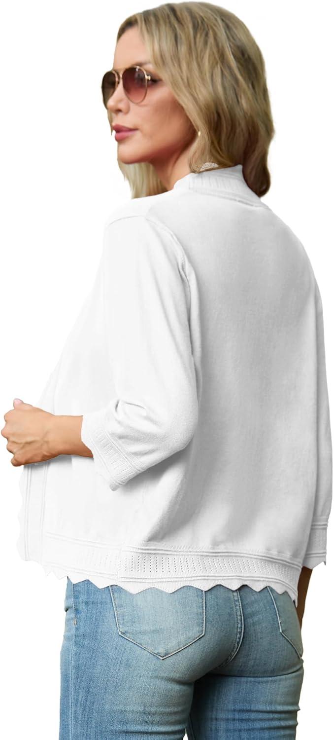 GRECERELLE Women's 3/4 Sleeve Summer Lightweight Knit Cropped Shrugs Cardigan Sweater(01 White)