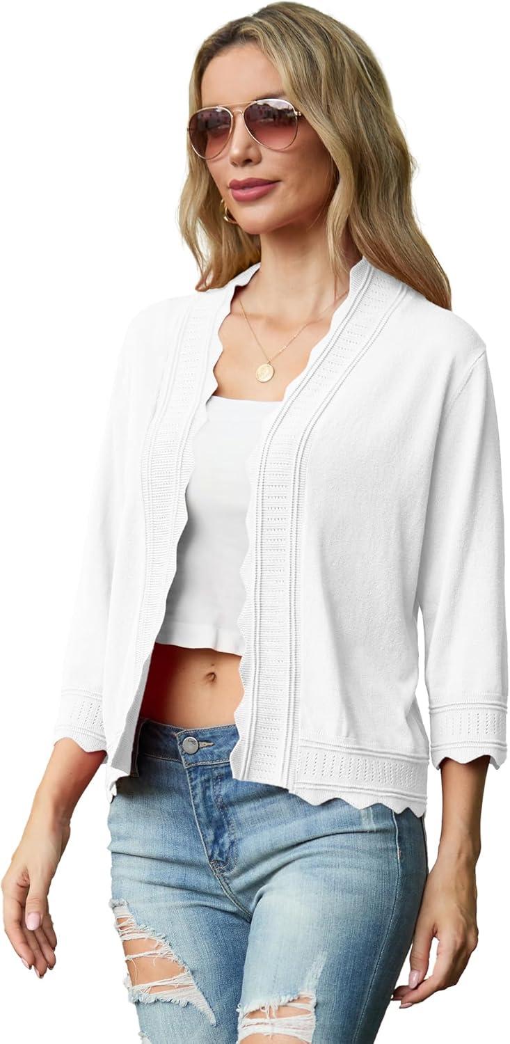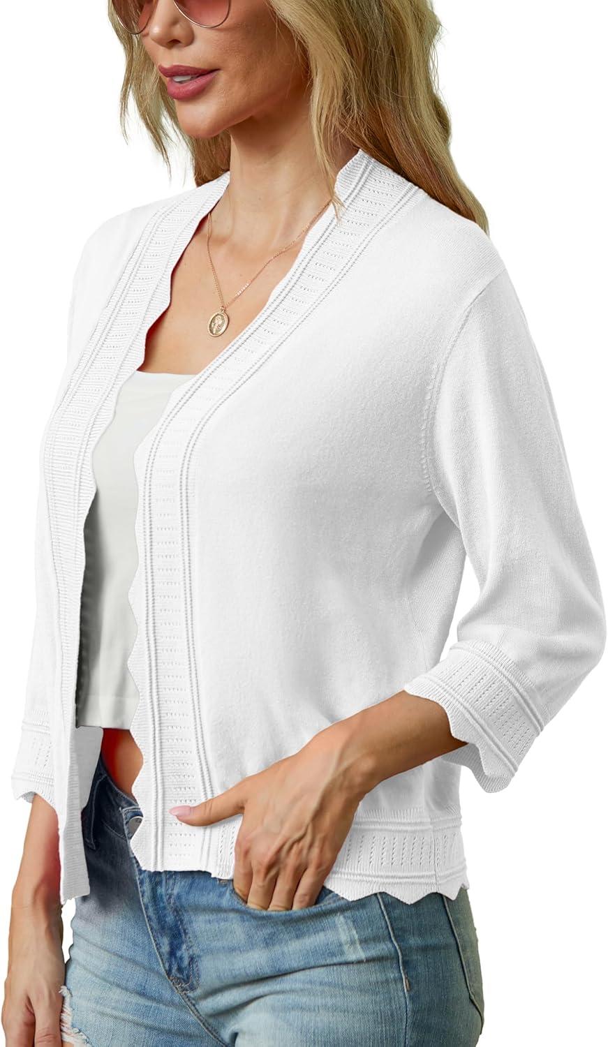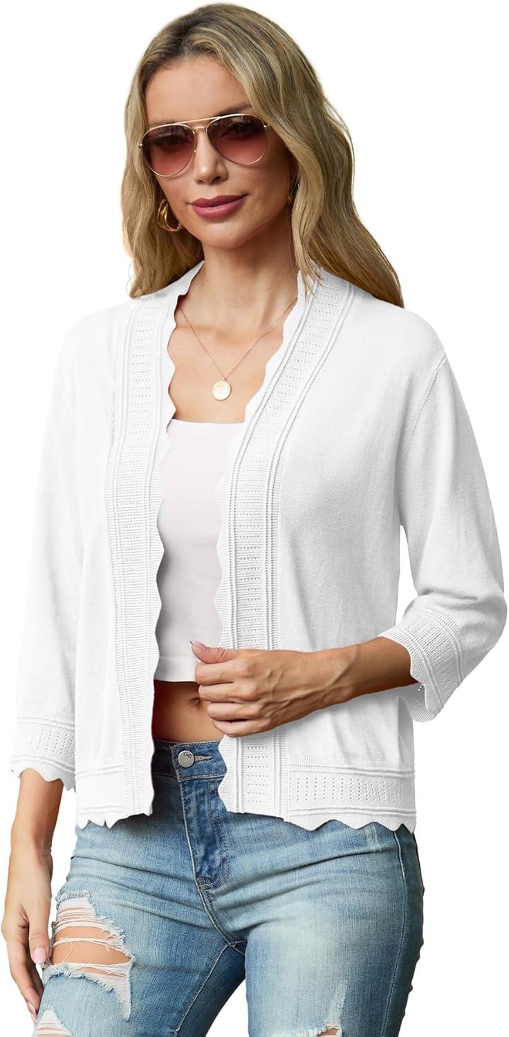 GRECERELLE Women’s 3/4 Sleeve Summer Lightweight Knit Cropped Shrugs Cardigan Sweater(01 White)