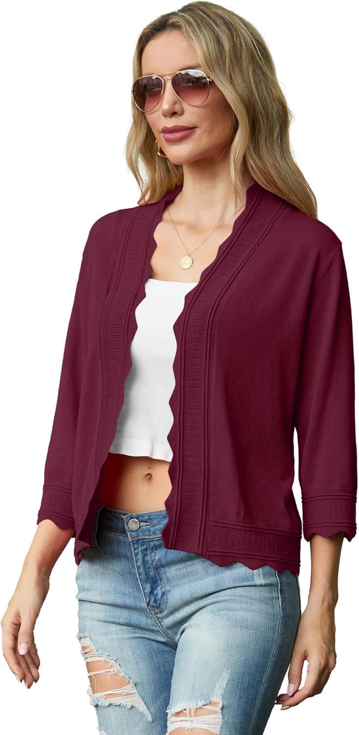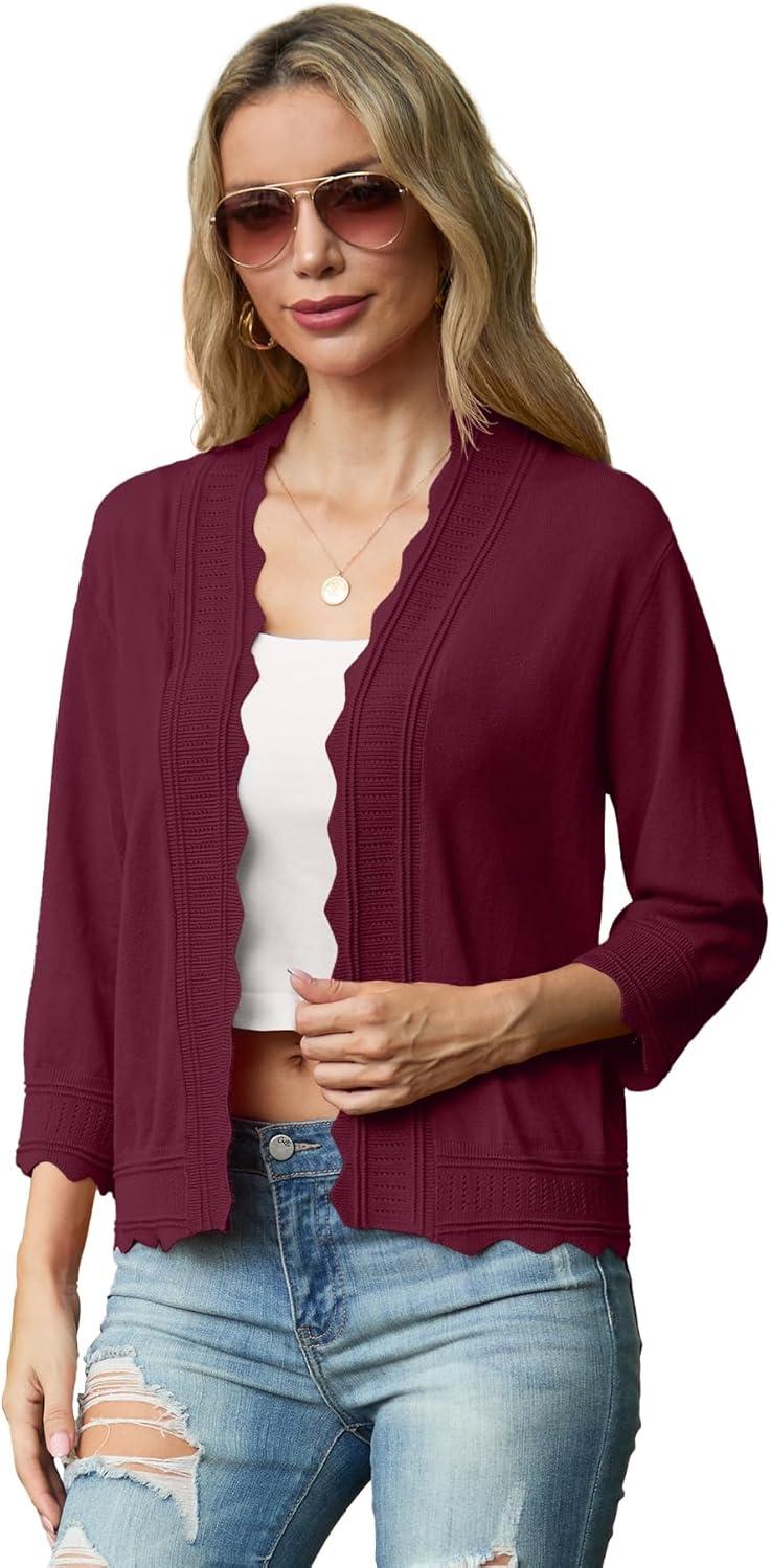 GRECERELLE Women’s 3/4 Sleeve Summer Lightweight Knit Cropped Shrugs Cardigan Sweater(Burgundy)