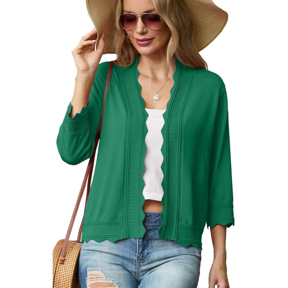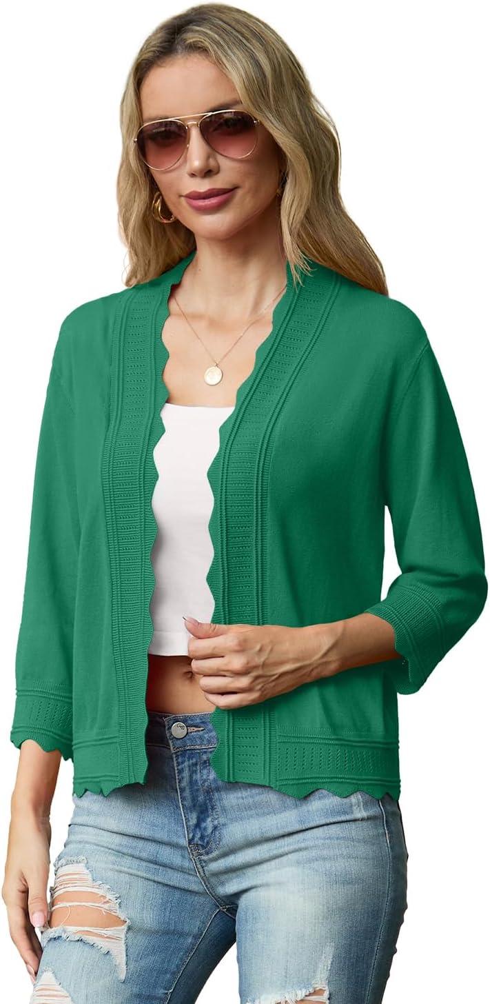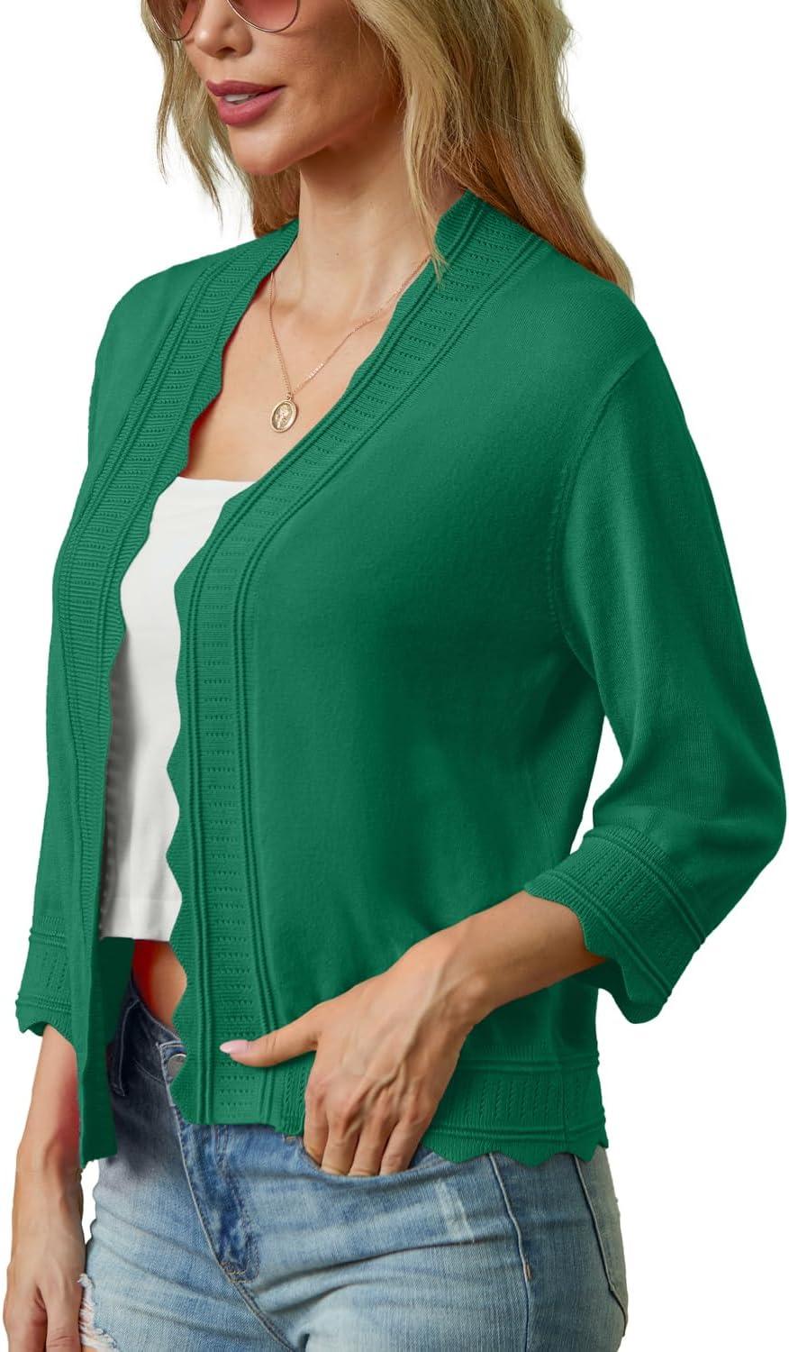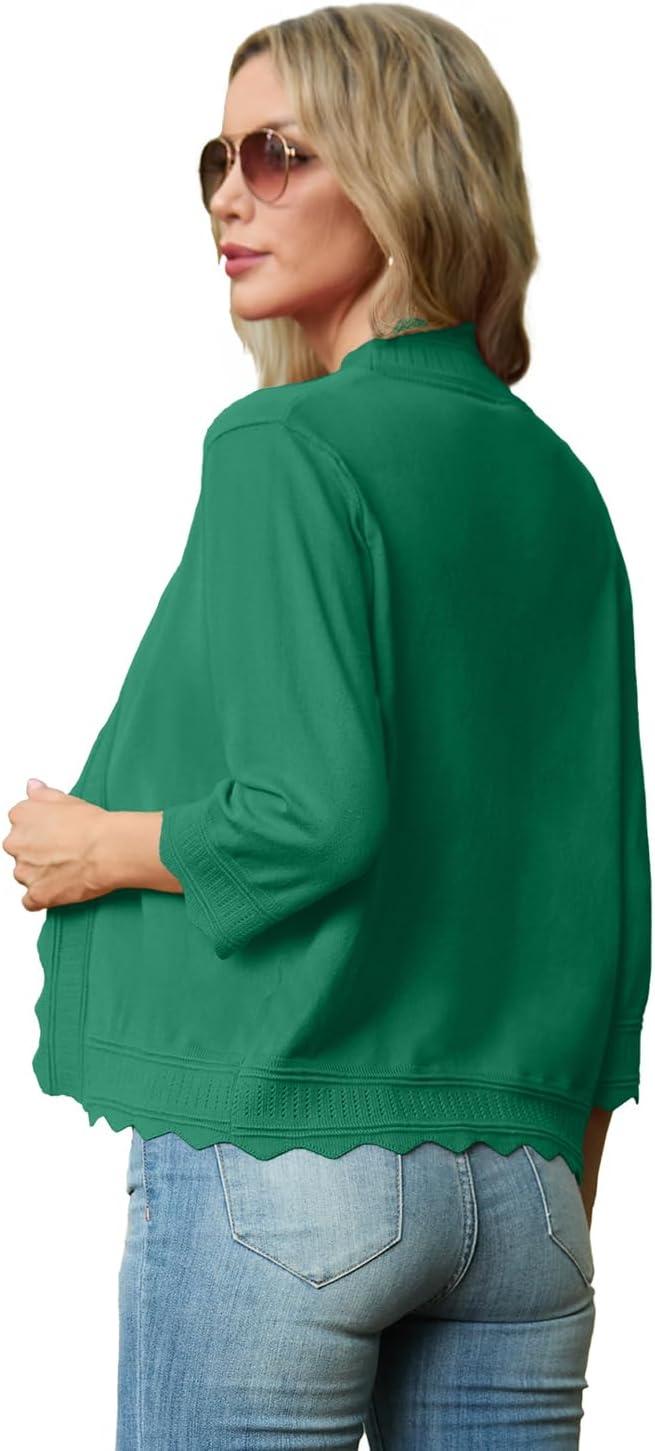 GRECERELLE Women’s 3/4 Sleeve Summer Lightweight Knit Cropped Shrugs Cardigan Sweater(Dark Green)