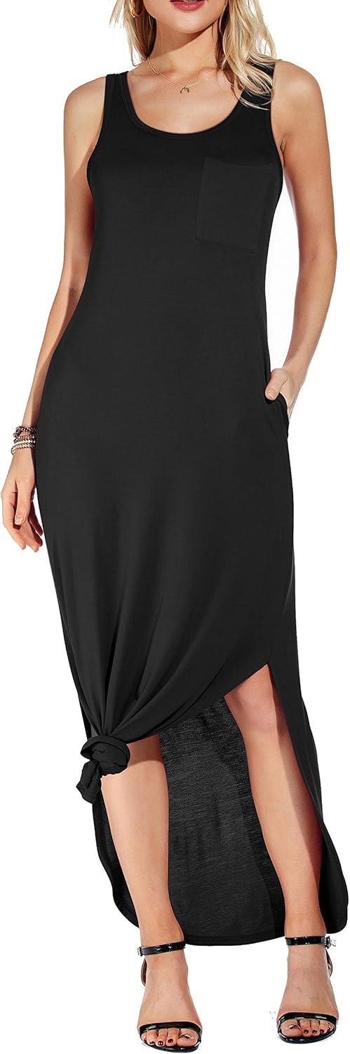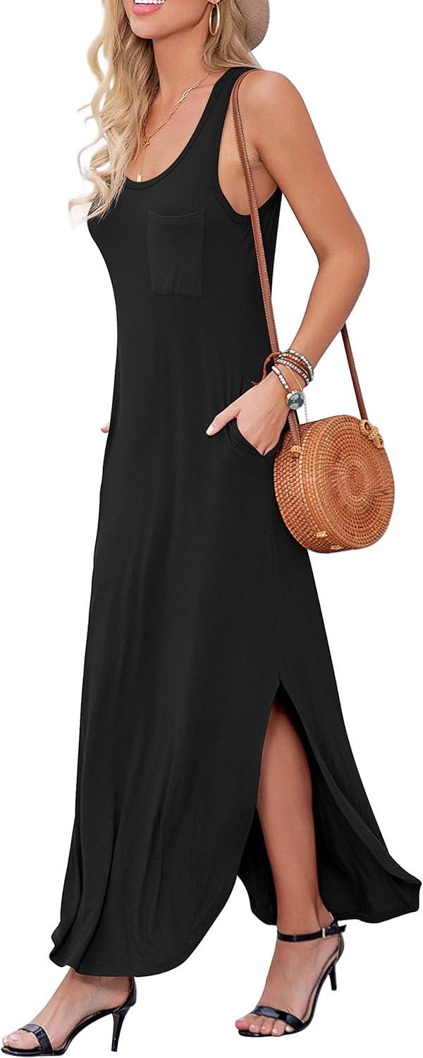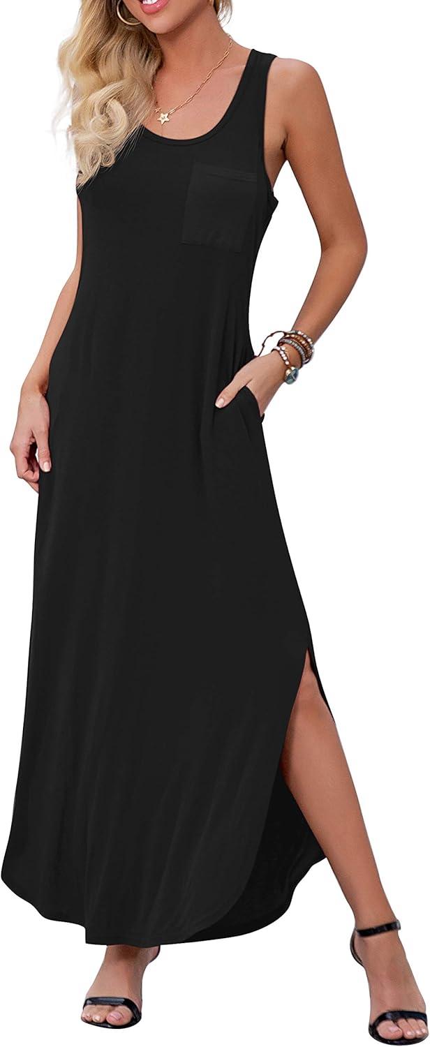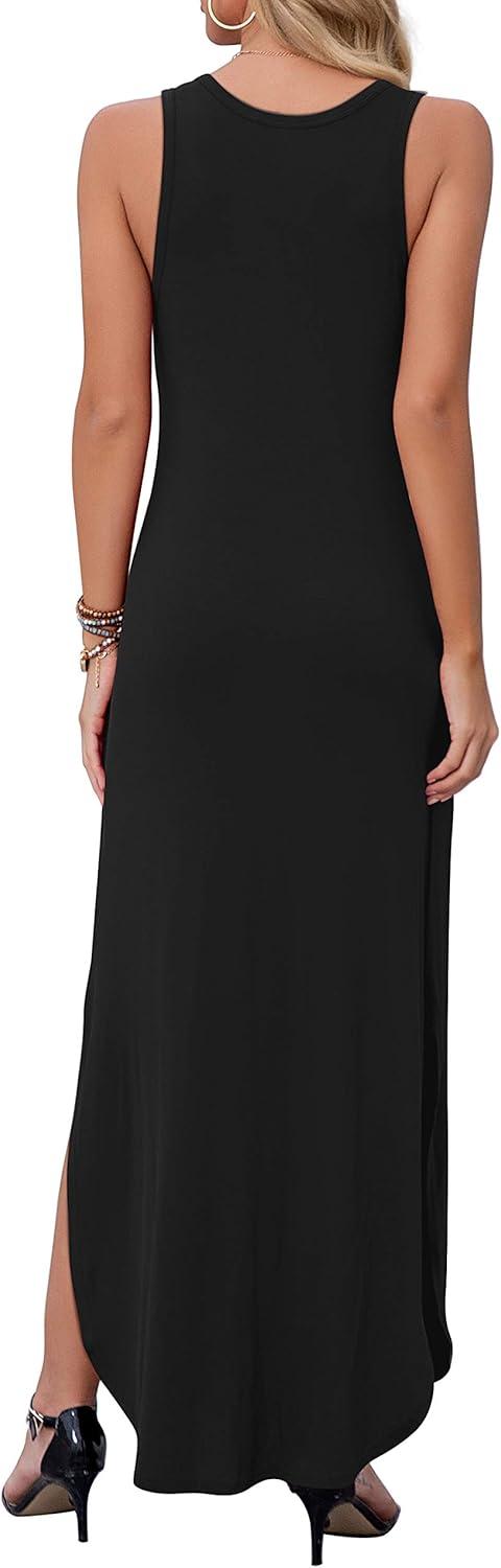 GRECERELLE Women’s Casual Fit Long Dress Sleeveless Racerback Split Fashion Maxi Dresses with Pocket Balck-Large
