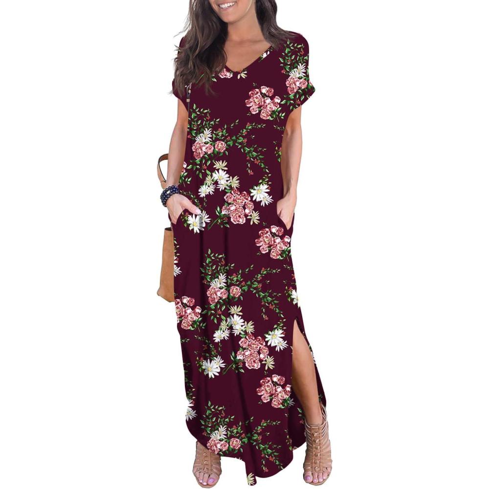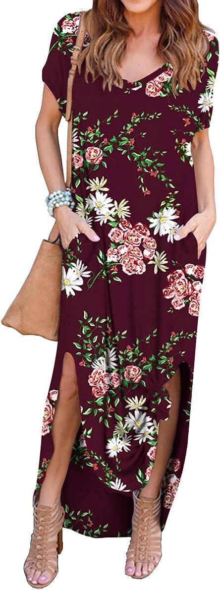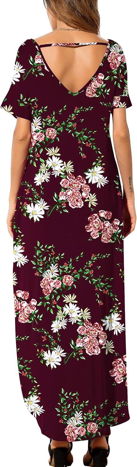 GRECERELLE Women’s Casual Loose Pocket Long Dress Short Sleeve Split Maxi Dresses(Fp Wine Red)