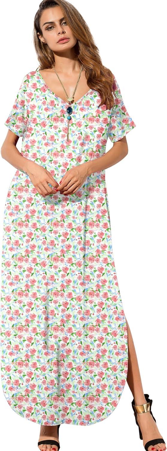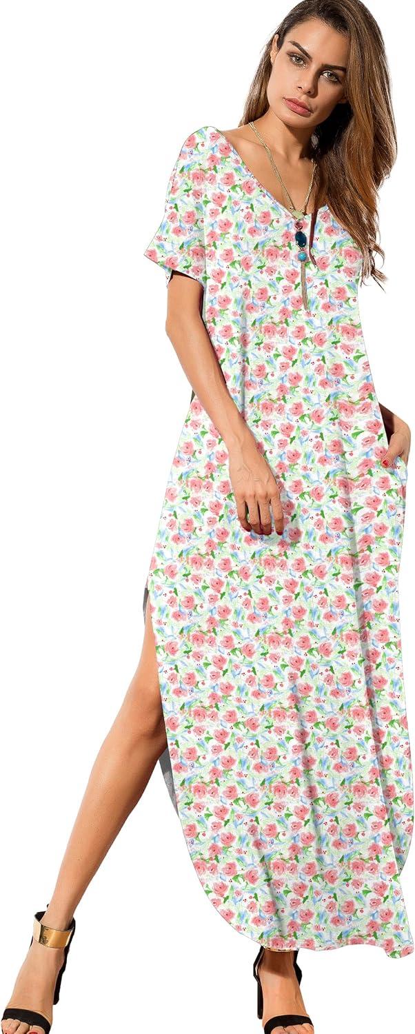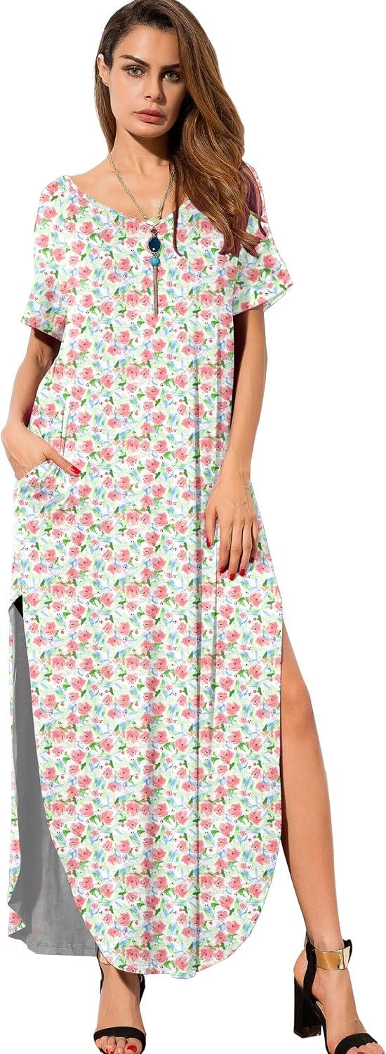 Be the first to review “GRECERELLE Women’s Casual Loose Pocket Long Dress Short Sleeve Split Maxi Dresses(White Pink Rose)”