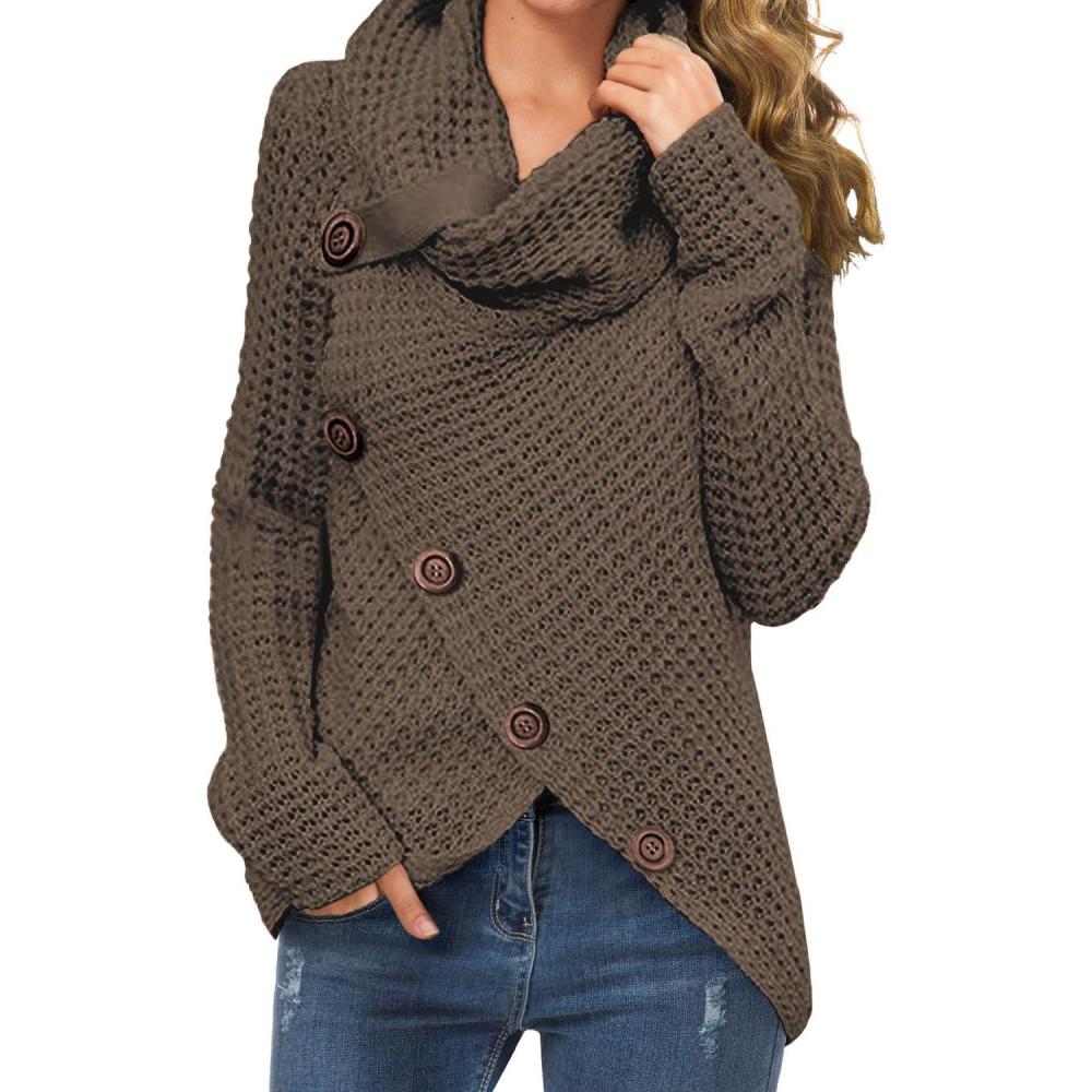 GRECERELLE Women's Fall Chunky Turtleneck Long Sleeve Asymmetric Hem Loose Knit Pullover Sweaters Tops, S-2XL(03 Dark Khaki)