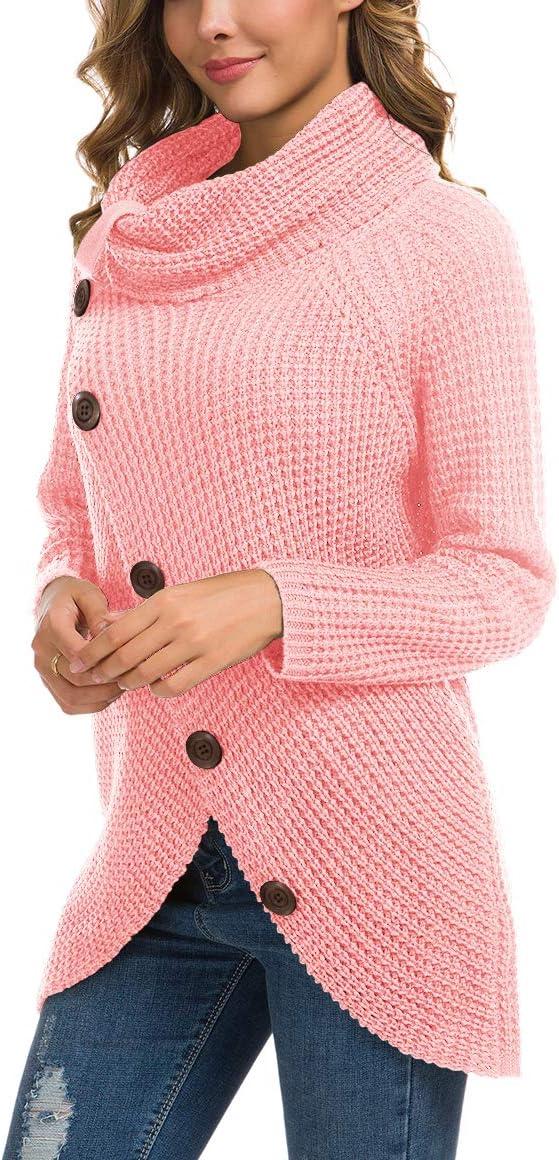 GRECERELLE Women's Fall Chunky Turtleneck Long Sleeve Asymmetric Hem Loose Knit Pullover Sweaters Tops, S-2XL(08 Pink)