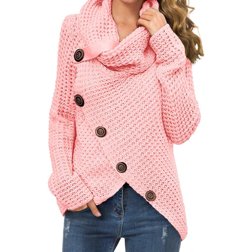imageGRECERELLE Womens Fall Chunky Turtleneck Long Sleeve Asymmetric Hem Loose Knit Pullover Sweaters Tops S2XL08 Pink
