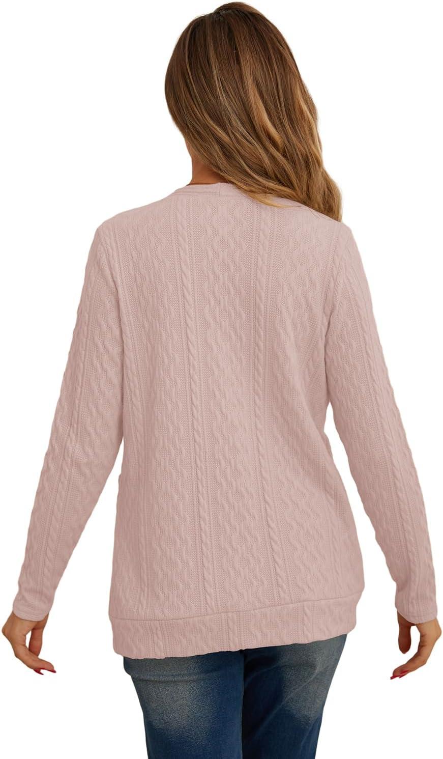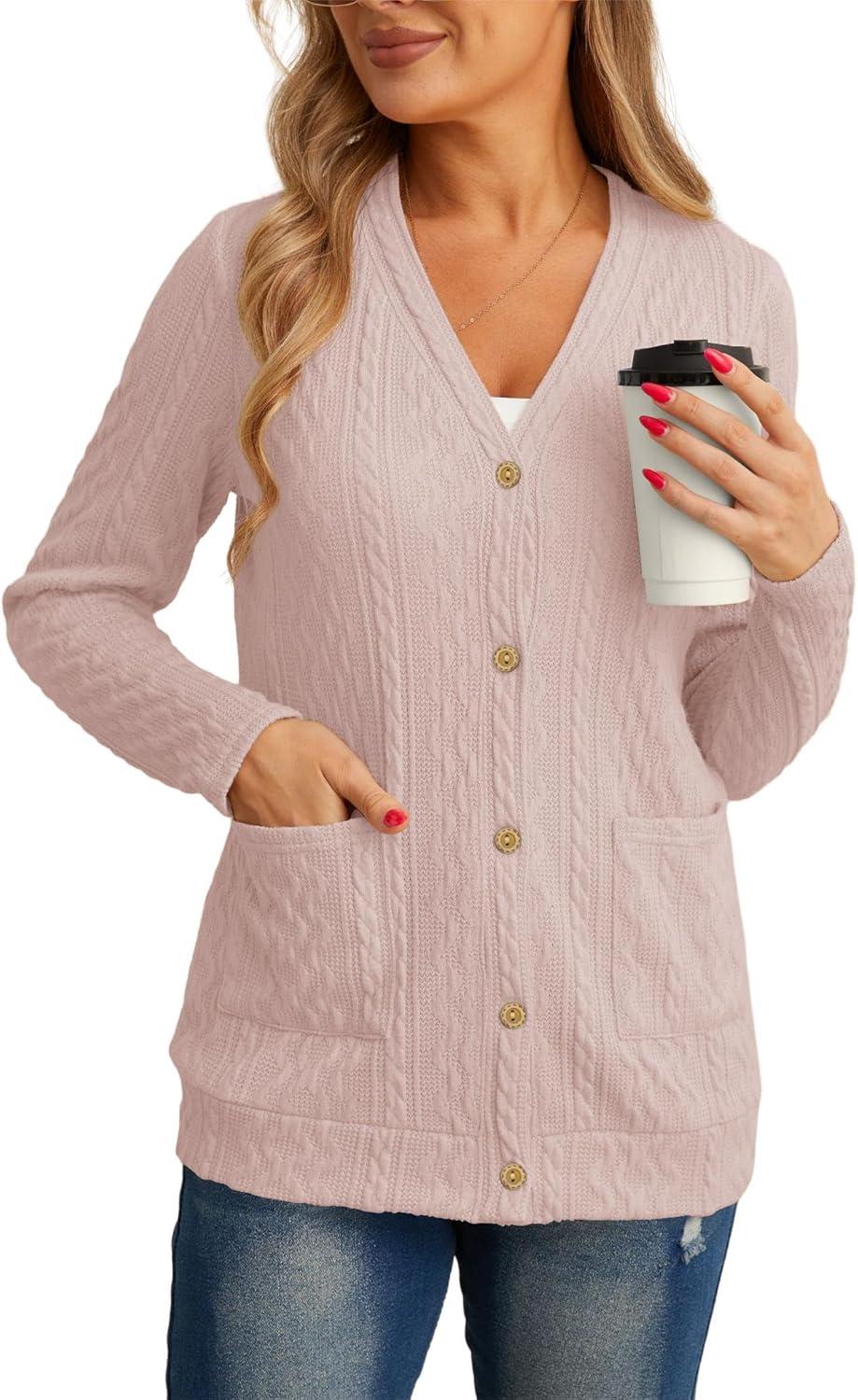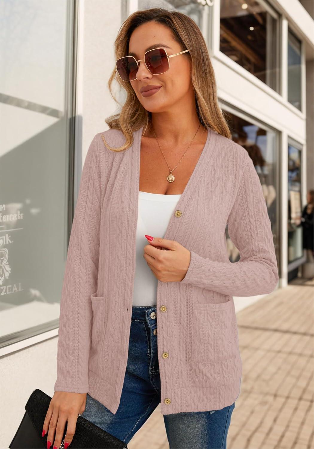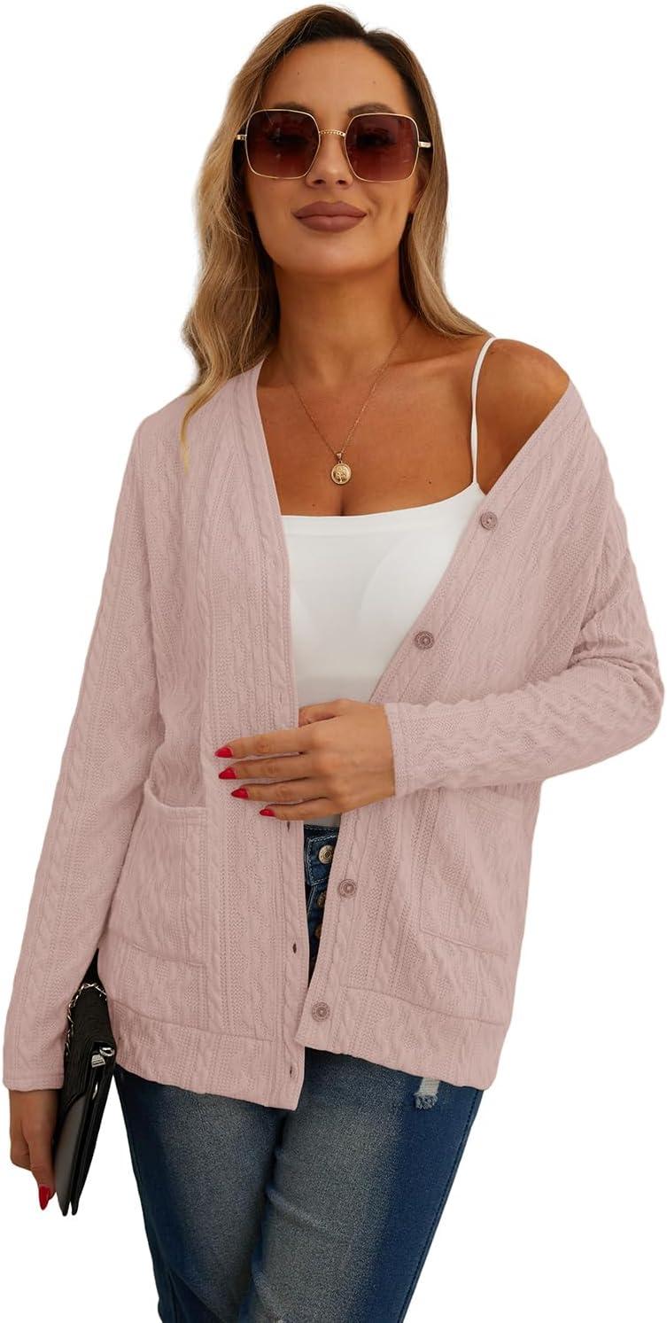 GRECERELLE Women’s Lightweight Cardigan Sweater Casual Long Sleeve Knit Cardigan Open Front Outwear Jacket with Pockets(06 Pure Pink)