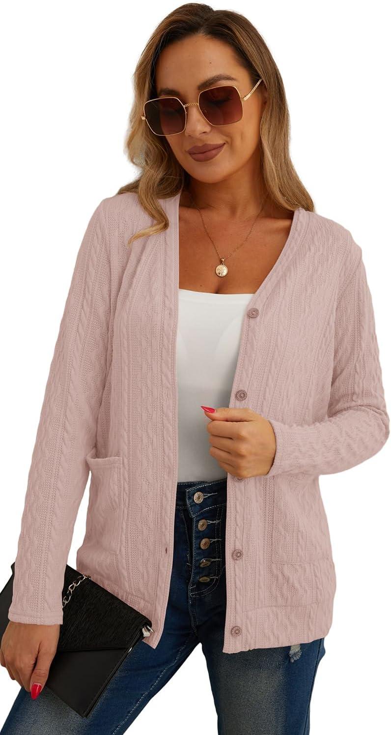 GRECERELLE Women's Lightweight Cardigan Sweater Casual Long Sleeve Knit Cardigan Open Front Outwear Jacket with Pockets(06 Pure Pink)